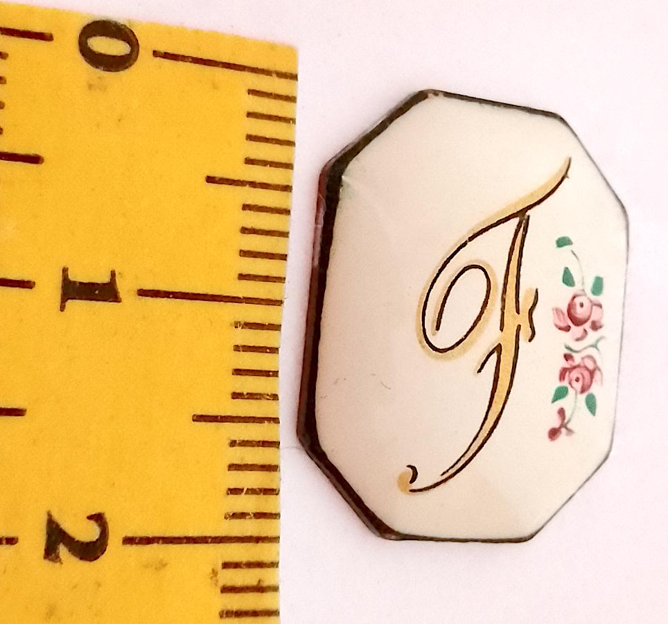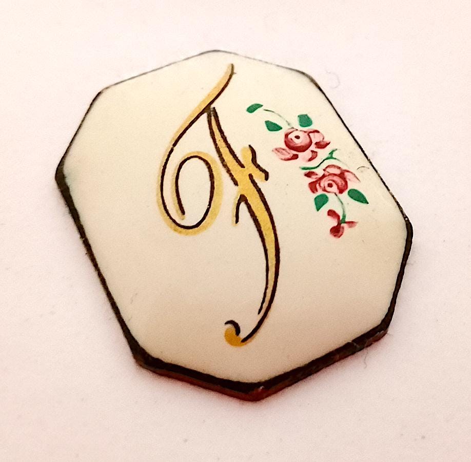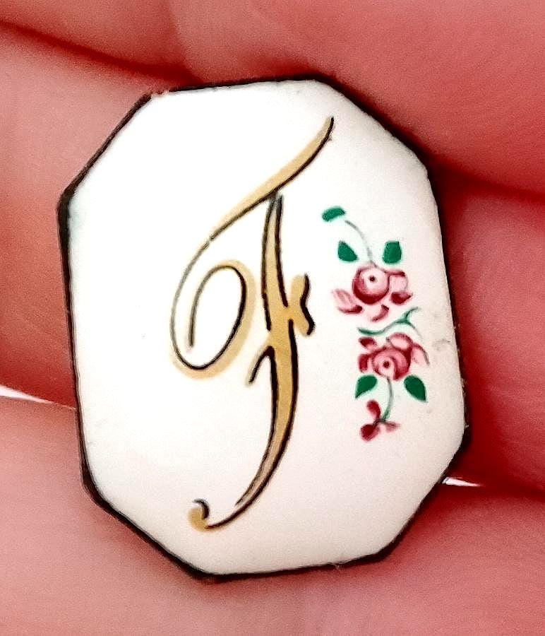 hand painted ceramic plate with initial letter F - delicious - vintage 70s - to be set for pendants and pins - excellent condition - as is