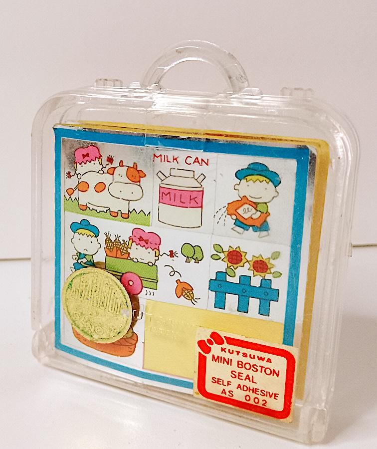 Spectacular mini suitcase-shaped box with metallic micro stickers from the Kutsuwa Mini Boston series - some are missing as shown in the photo but overall still in excellent condition - a super kawaii gem - as shown in the photo - as is