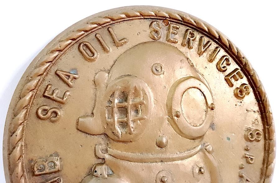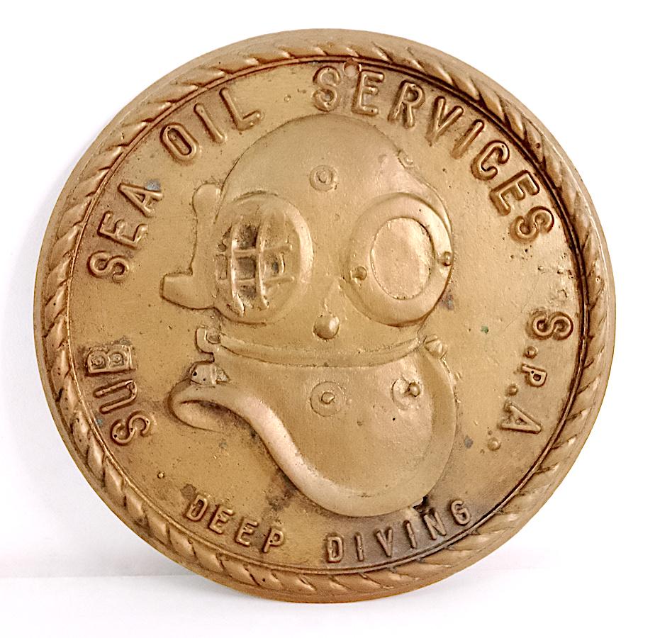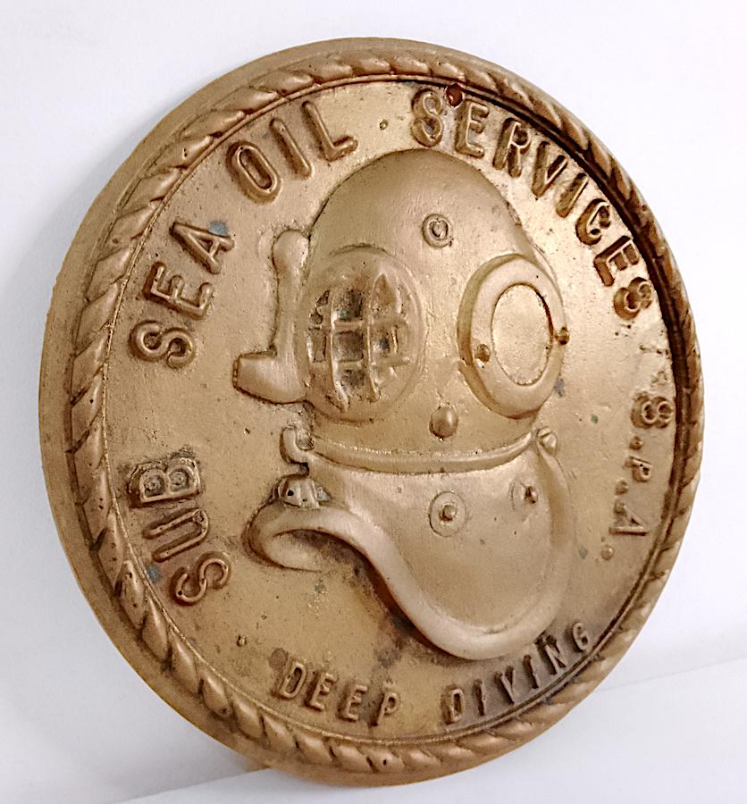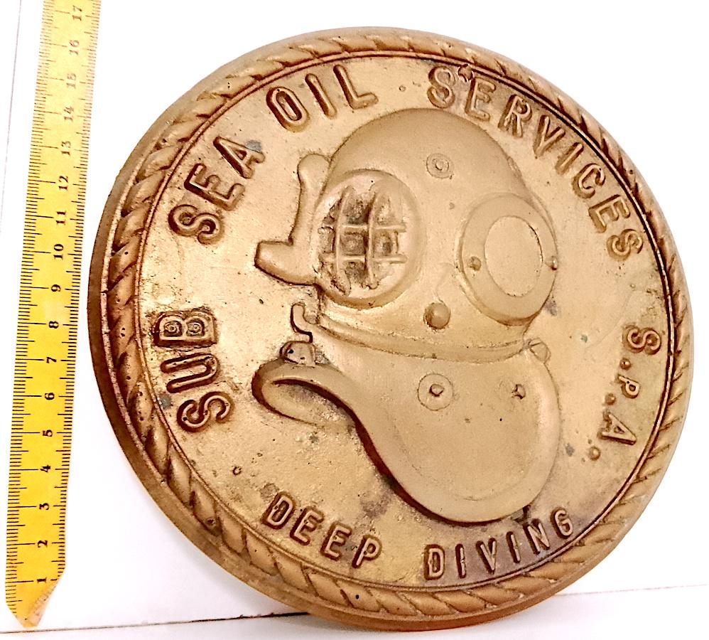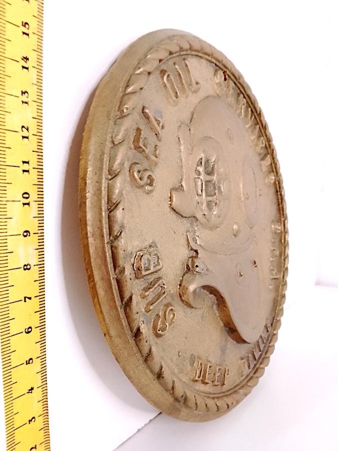 large coat of arms emblem to hang very heavy in cast and gilded brass - 70s - one hole for hanging and one hole of time as per photo - as is