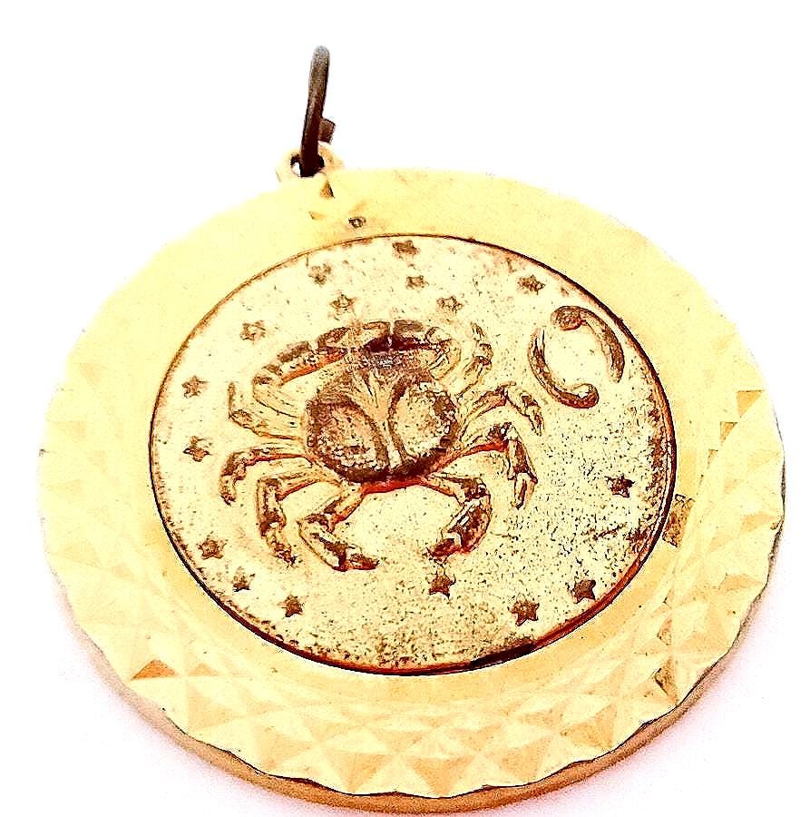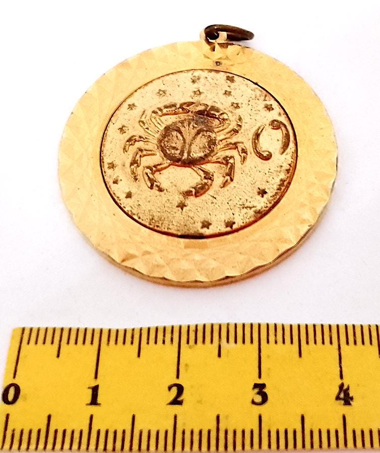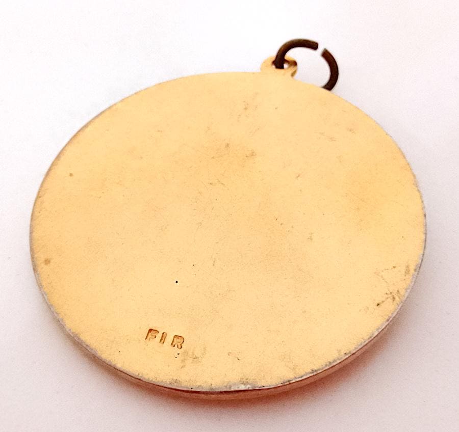 large gold-plated metal pendant marked FIR on the back - 1970s - used, needs polishing, some marks on the raised parts as shown in the photo - as is