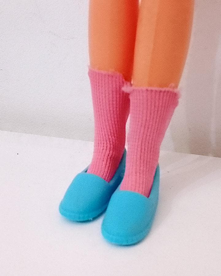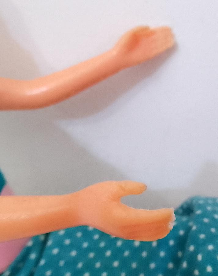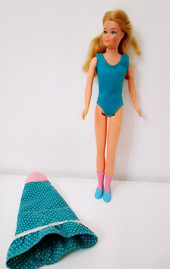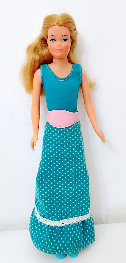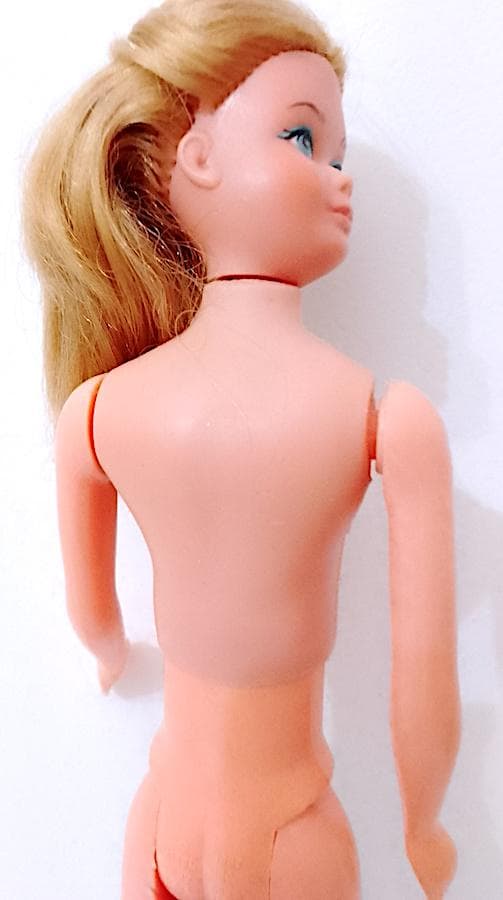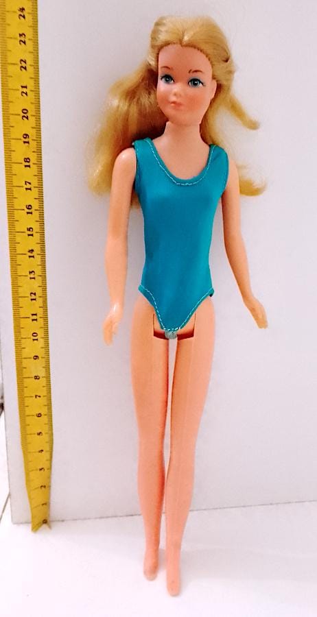 original Skipper Growing Up doll ( Skipper grows with you) from 1975 by Mattel - hair washed and combed in good condition, body and mechanism intact, works perfectly and extends by turning the arm - the feet have been partially recreated because originally they were without the toes, from the face the result is better than in the photo !! She wears the Ginger Growing Up outfit from the same year, except for the shoes that have been added and are from the 80s - complete with the very rare original pink socks - the body has been sewn up because it had loose elastic, same thing for the closure of the skirt on the back - conditions and dimensions as per photo - as is