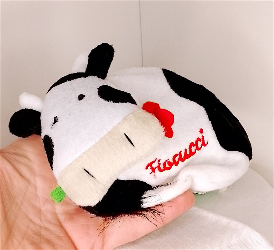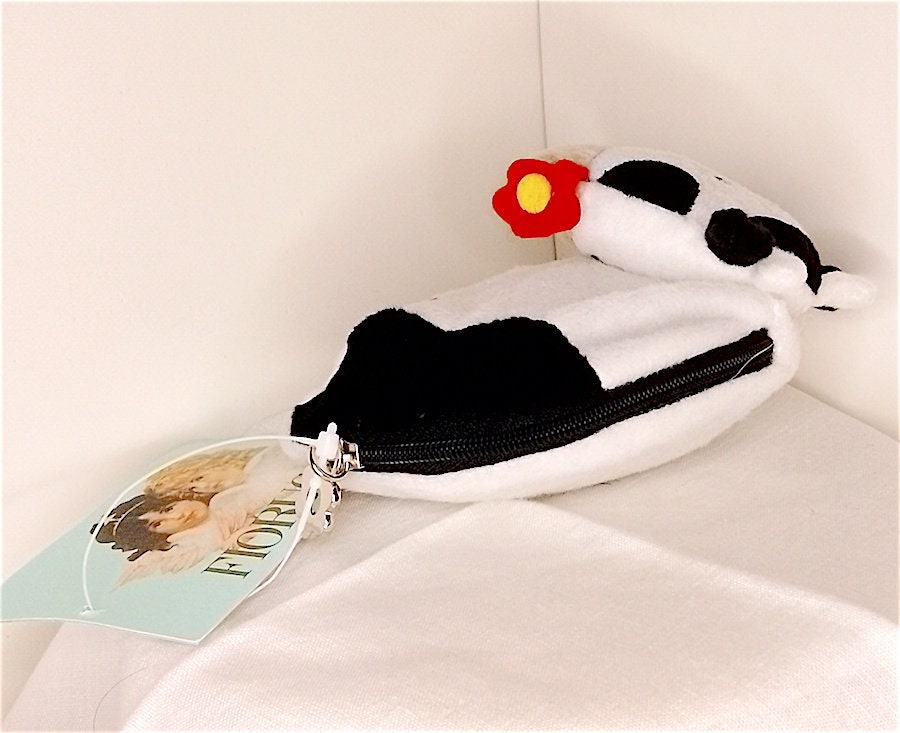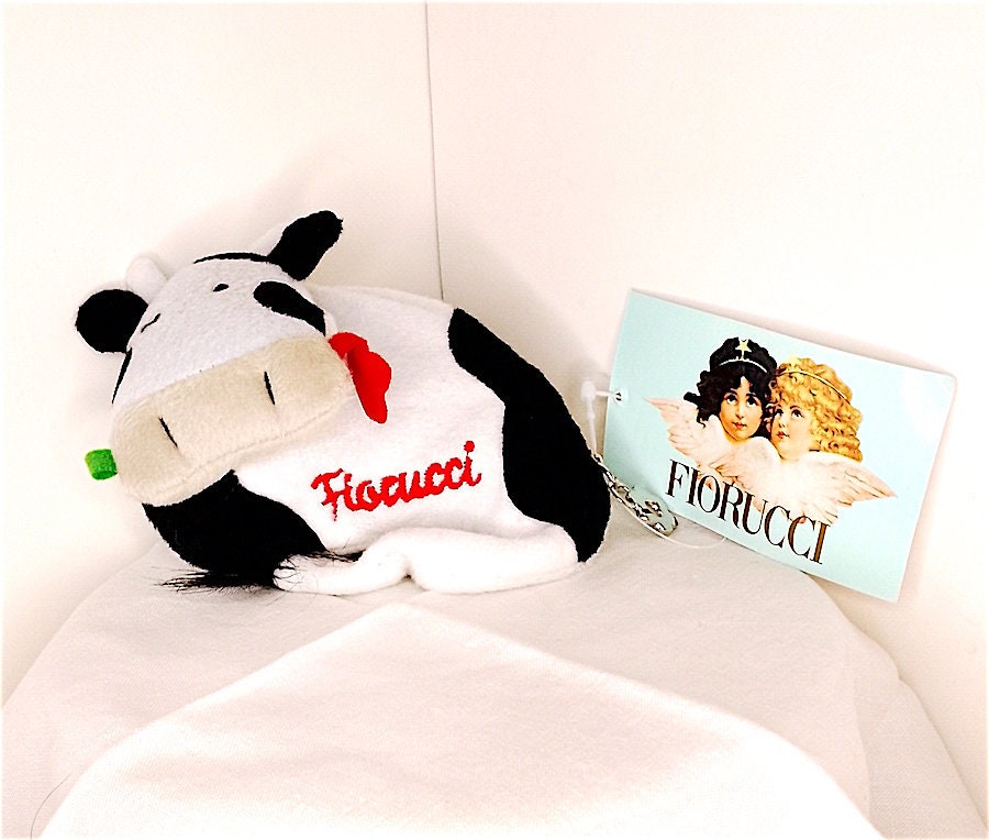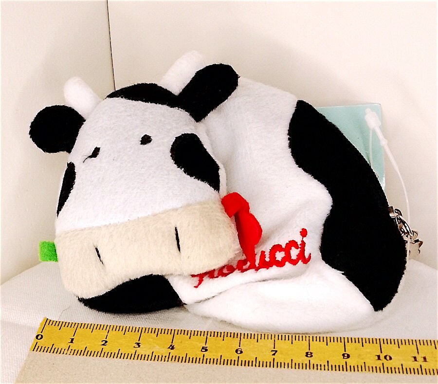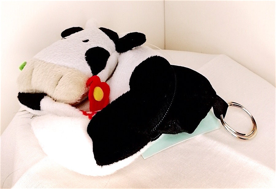 beautiful soft plush cow shaped purse with key rings inside
