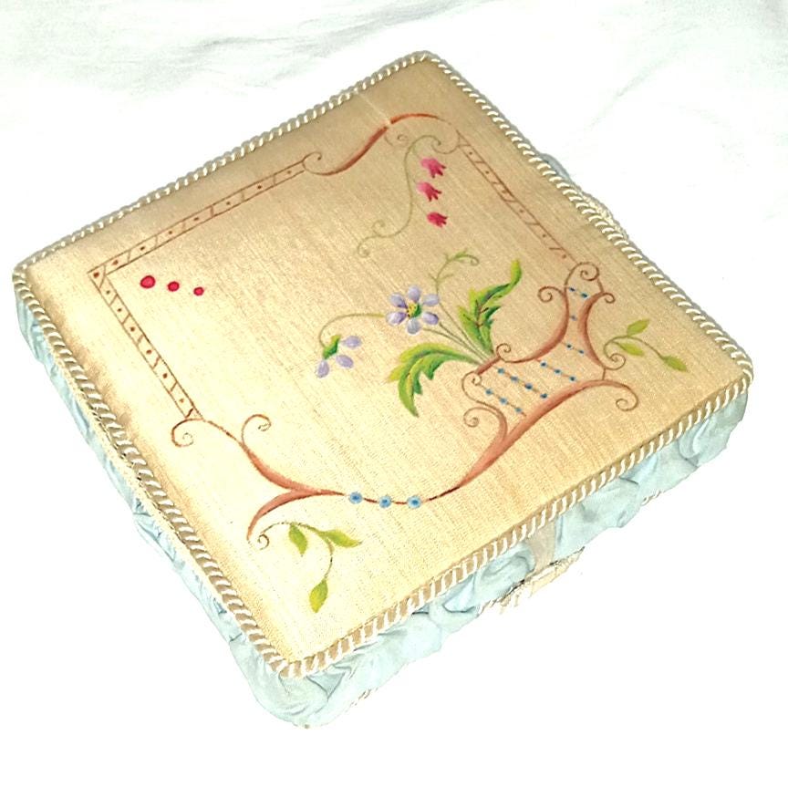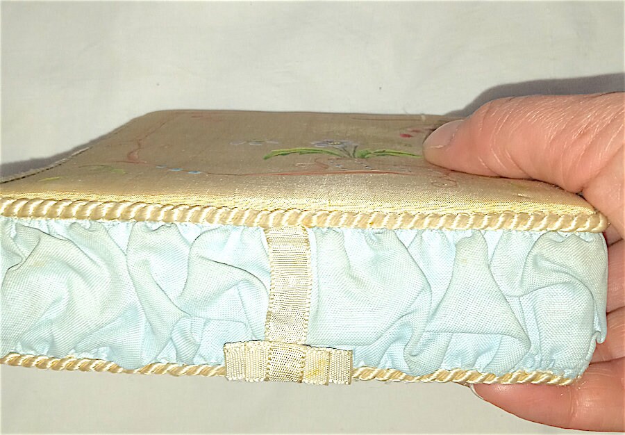 Beautiful little box hand made in the 50s with embroidery and trimmings