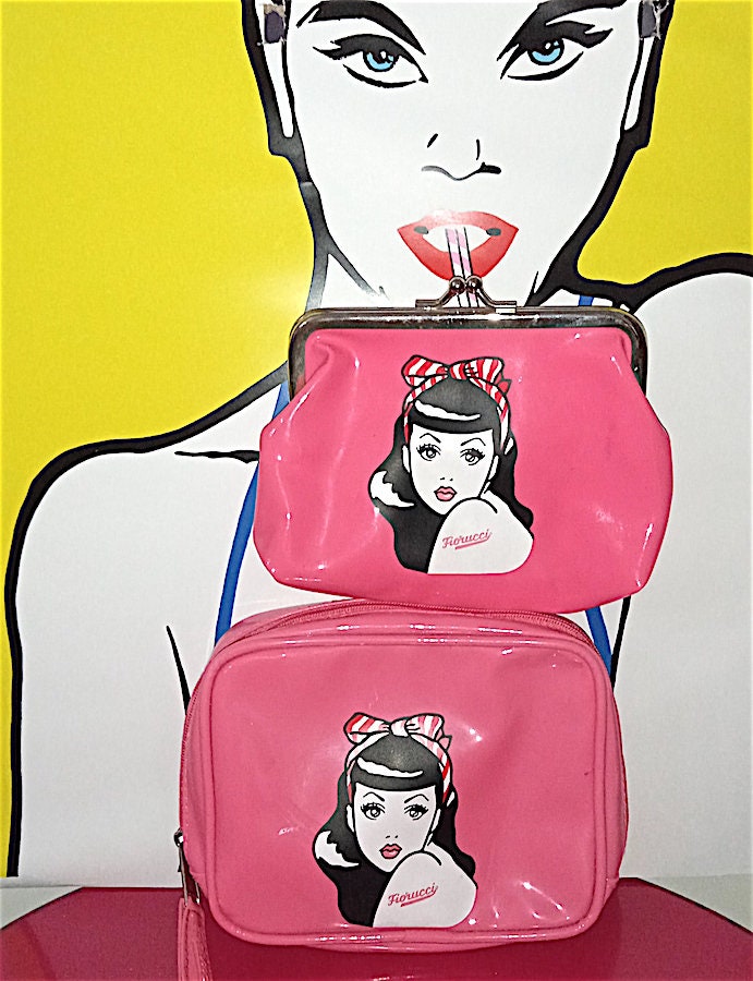 beautiful set with shiny clip purse + makeup bag pouch