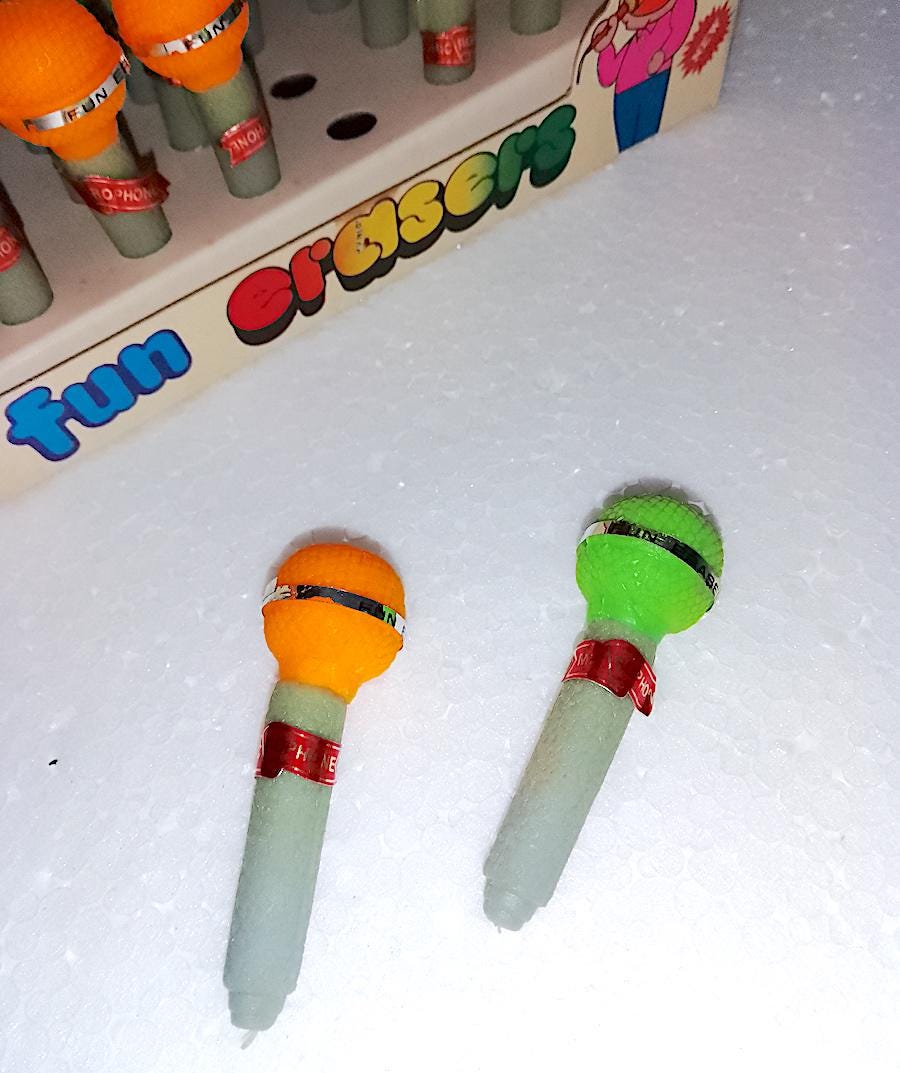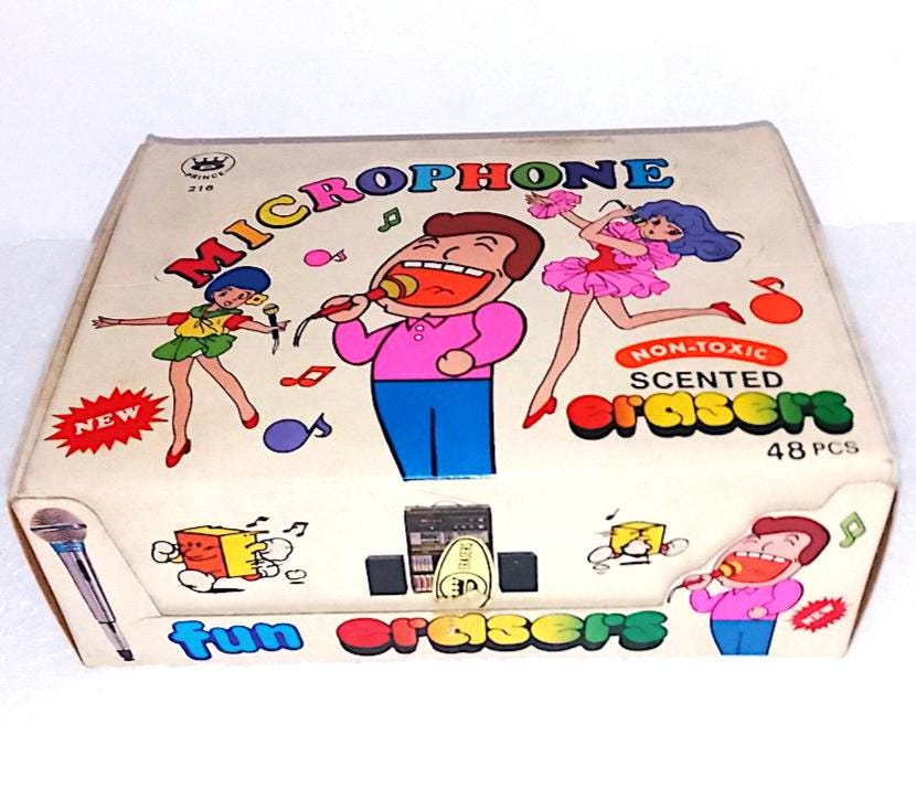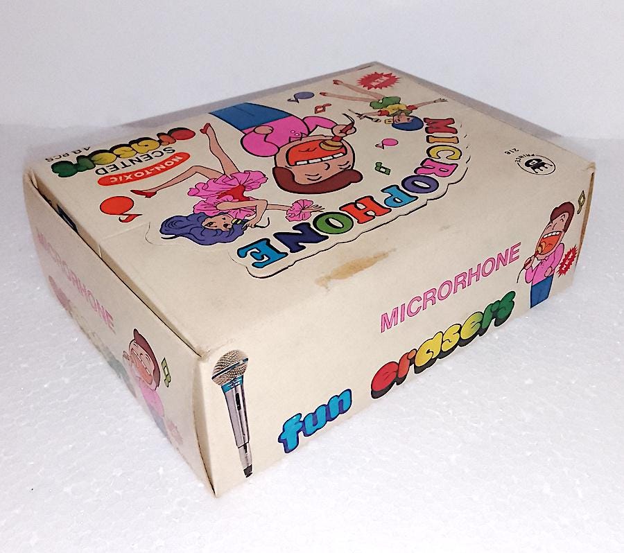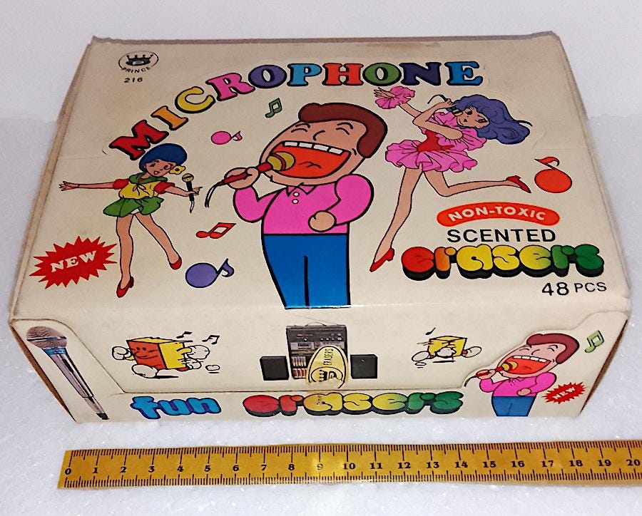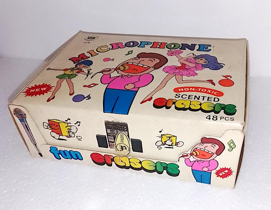 very rare original 80s box with Creamy Mami drawings complete with 48 microphone-shaped erasers