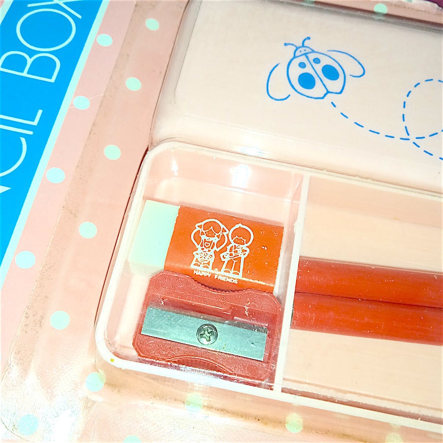 splendid plastic case with 2 pencils + sharpener and eraser