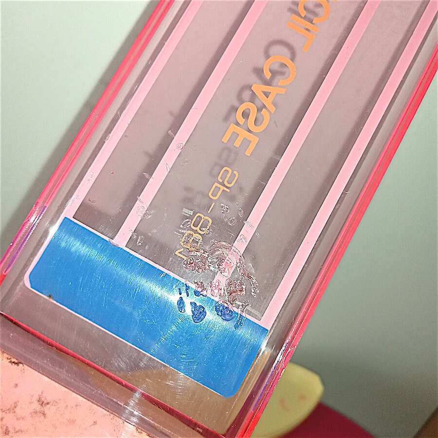the eraser created some melting of the plastic of the ruler and little inside the case