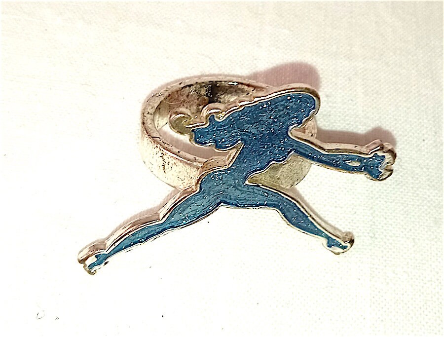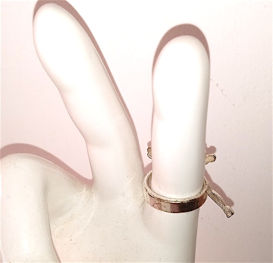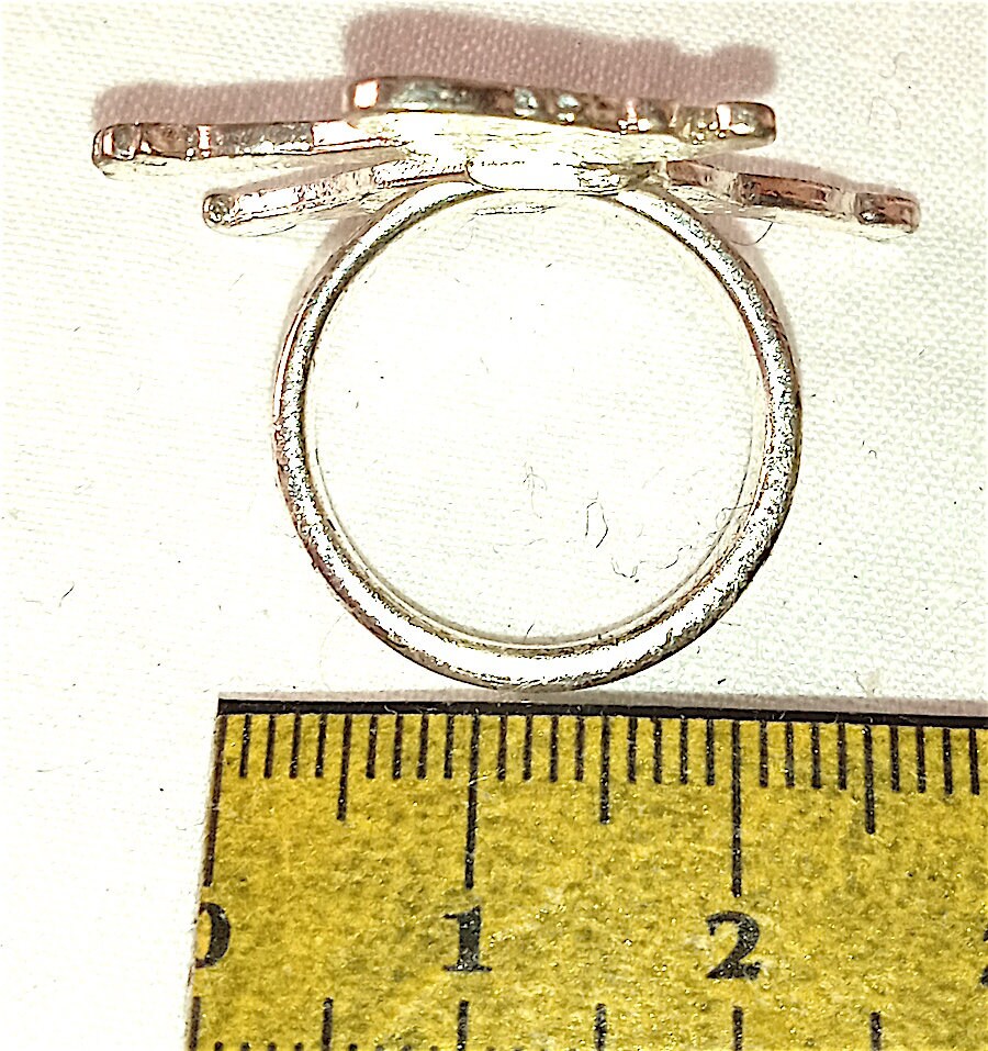 beautiful and rare maxi ring in silver metal with glittery blue enamel