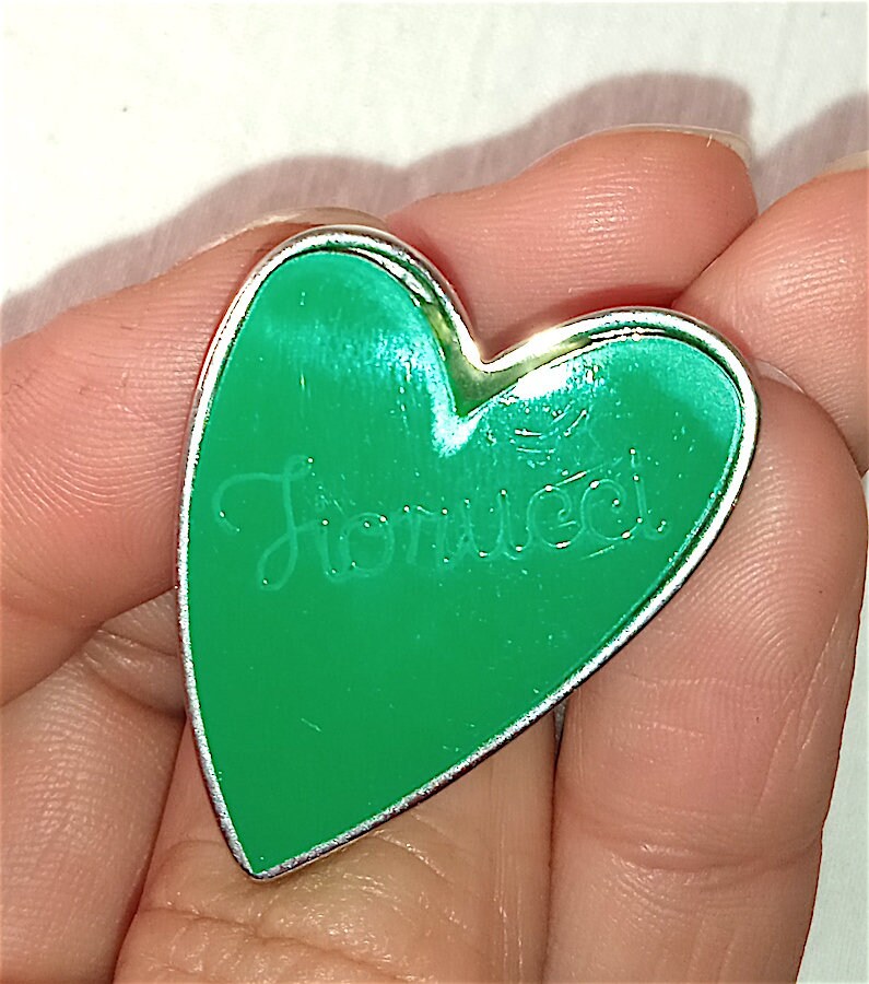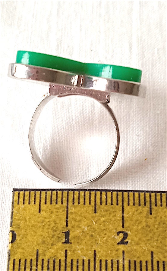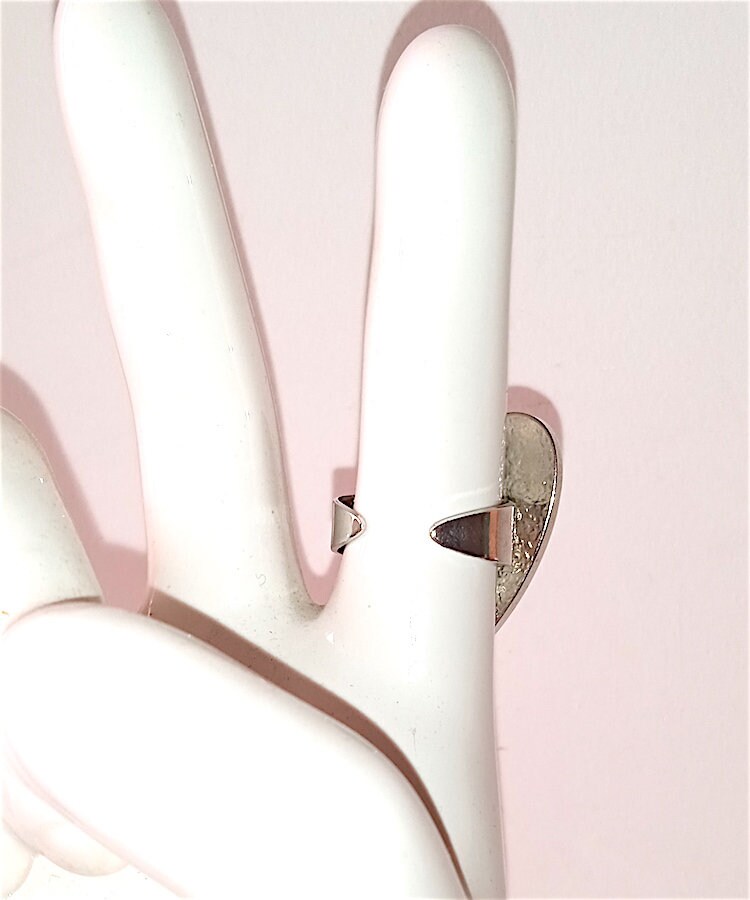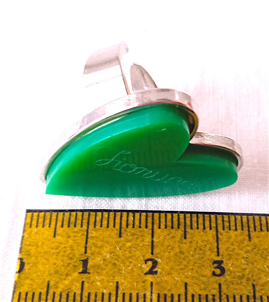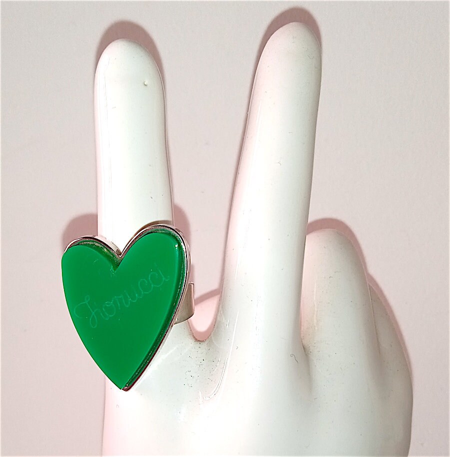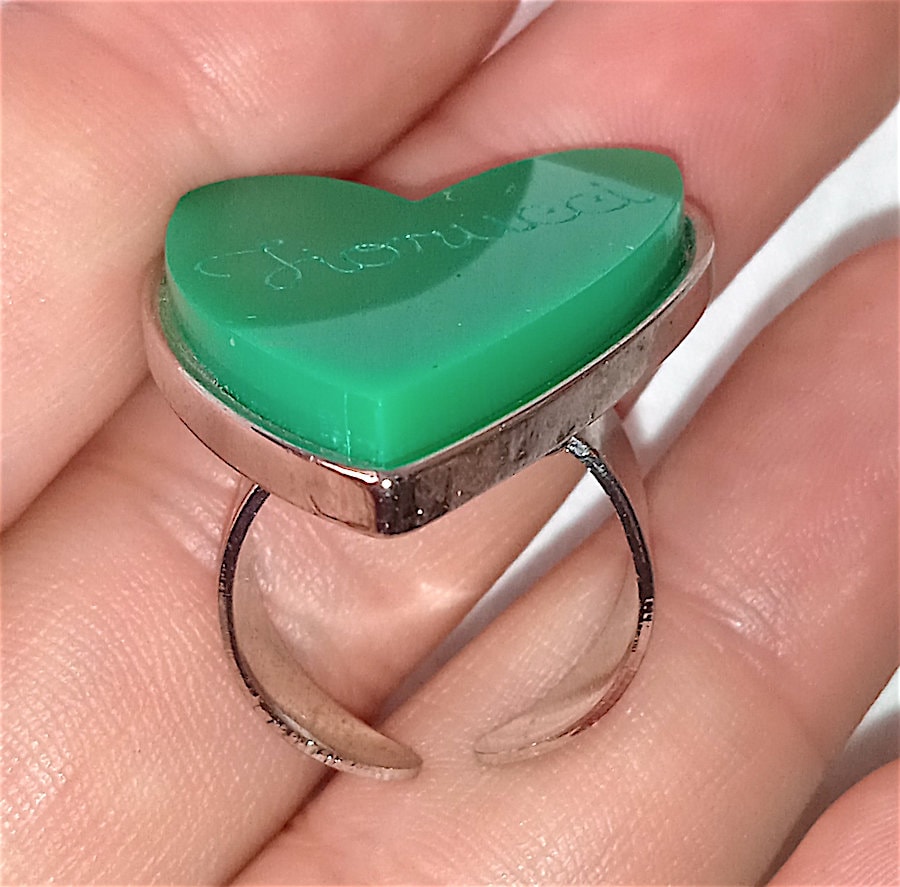 beautiful and rare maxi ring in silver metal with plastic heart with logo