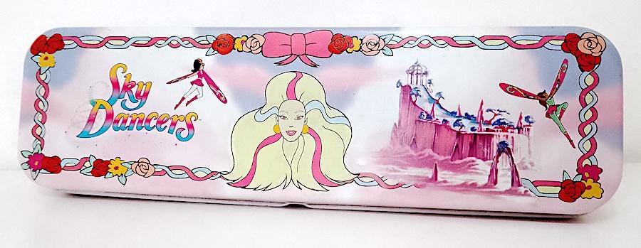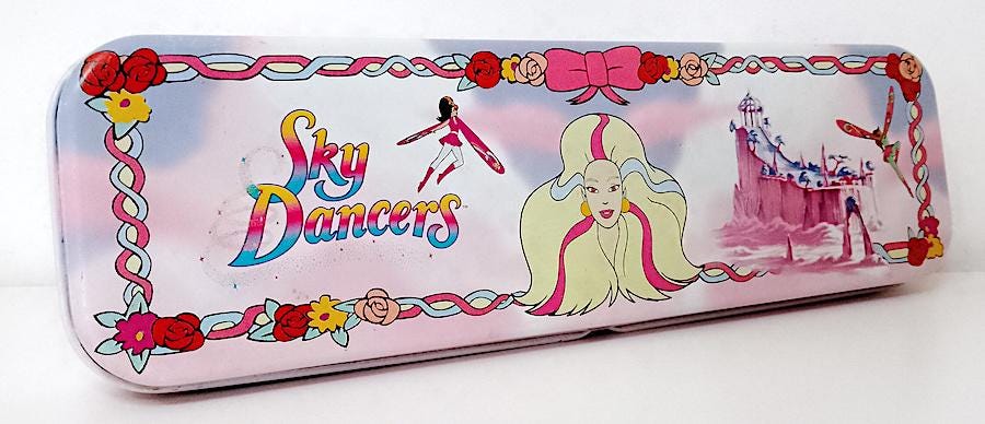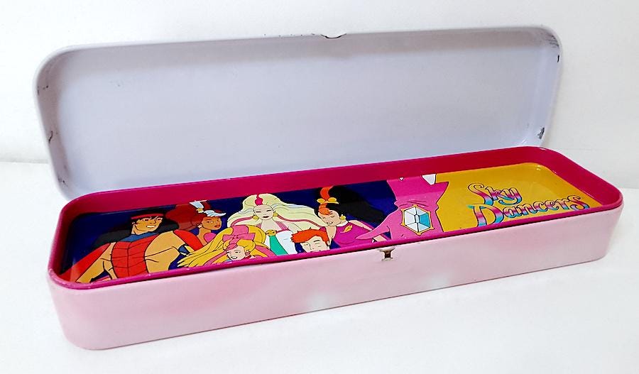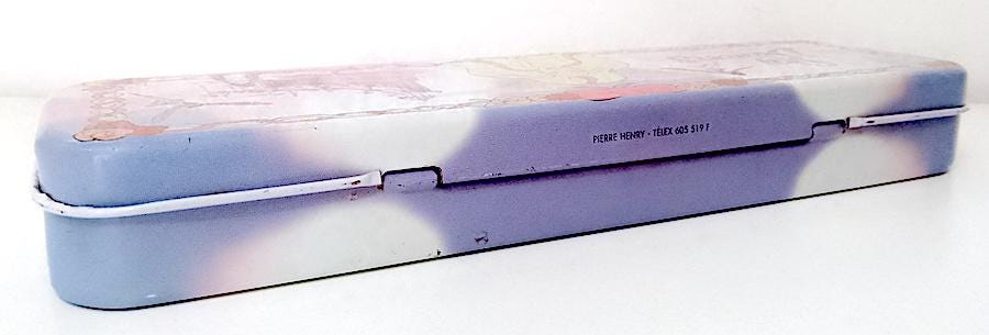 beautiful tin pencil case with removable compartment - used, some signs of wear but overall good condition - beautiful illustrations - as per photo - as is