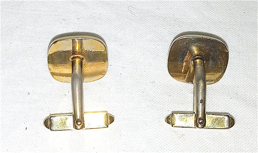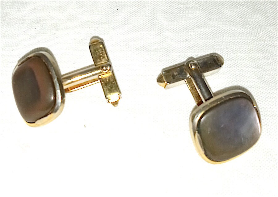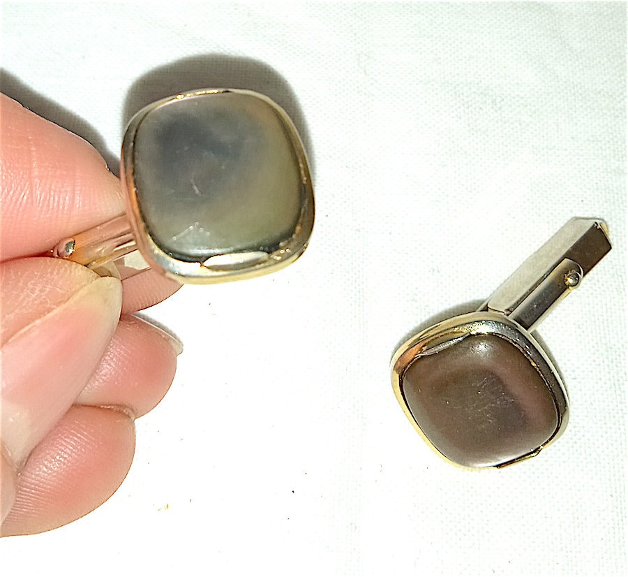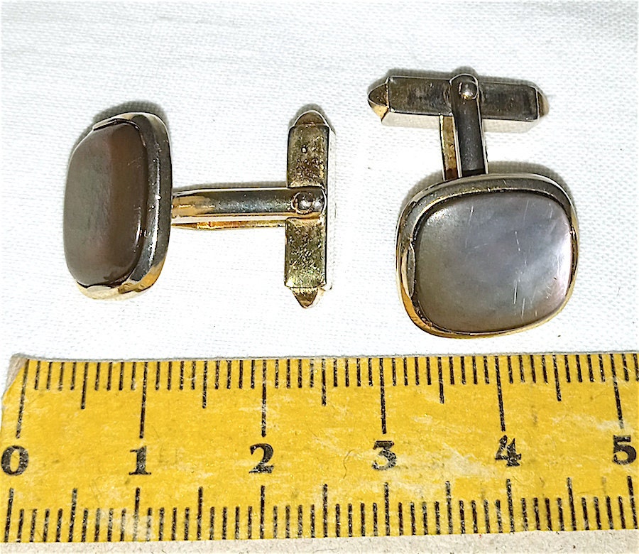 beautiful pair of original 1970s cufflinks in golden metal and mother of pearl