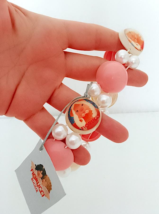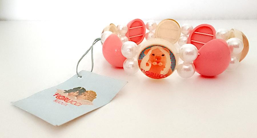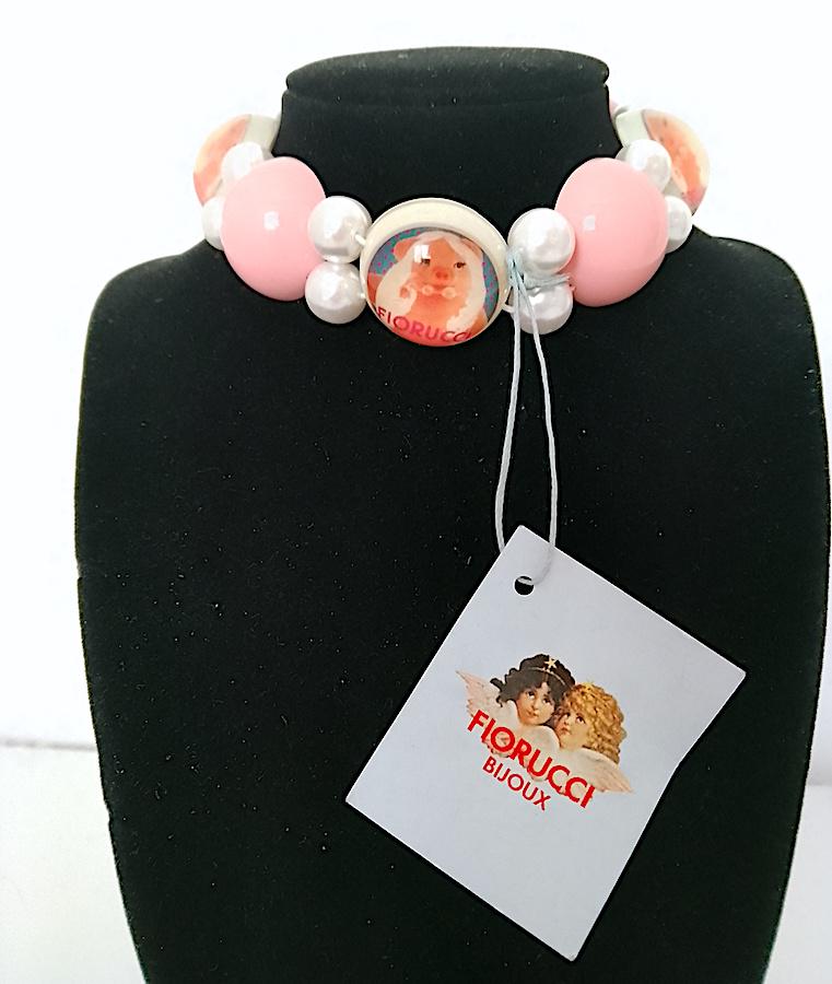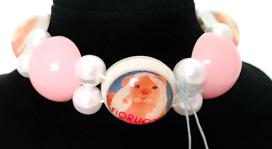 splendid original and never used super pop necklace by Fiorucci from the 90s with Miss Piggy, pink and white tones, choker