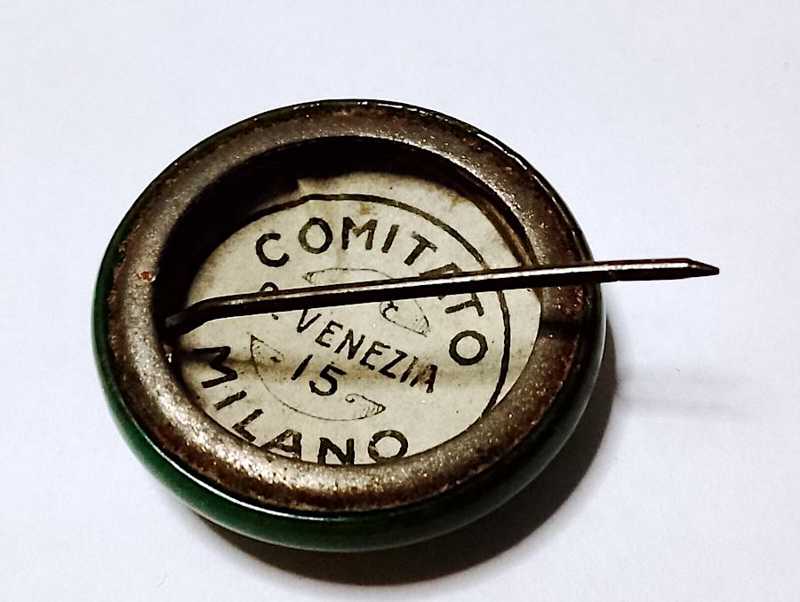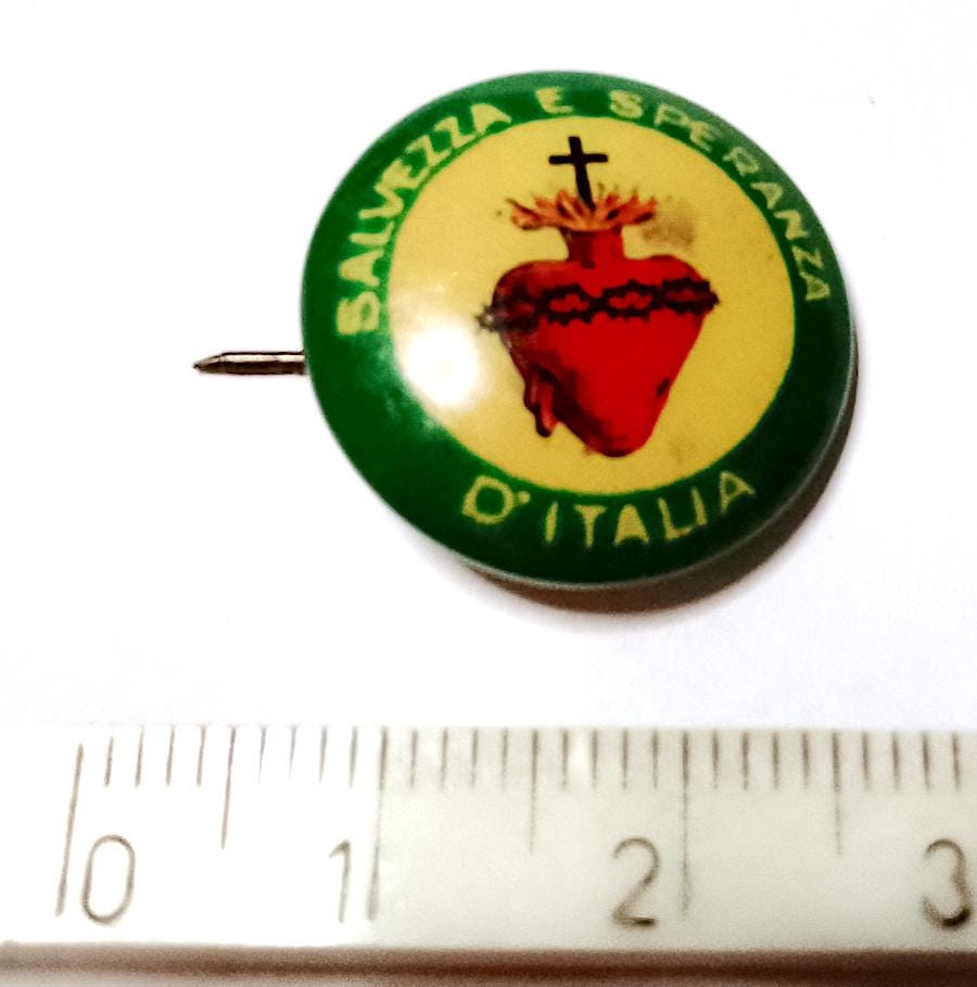 Original Italian 1920s metal pin, from the Venice Milan Sacred Heart of Jesus Committee - in silkscreened tin - excellent condition - as shown in the photo - as is
