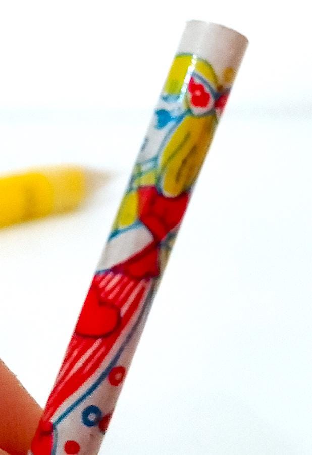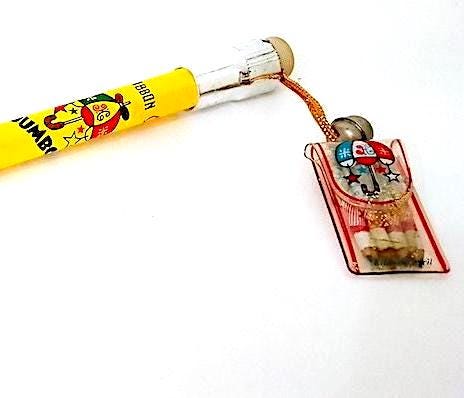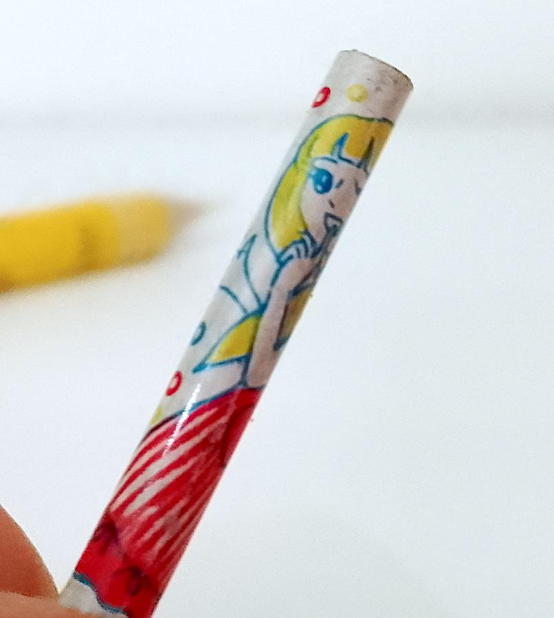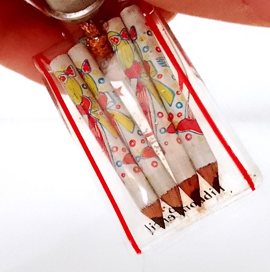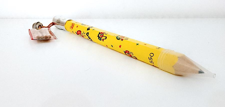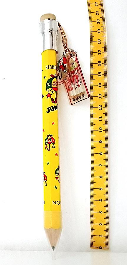 new never used jumbo pencil with charm containing 4 micro pencils with drawings of little girls in the style of Makoto Showa Era big eyes
