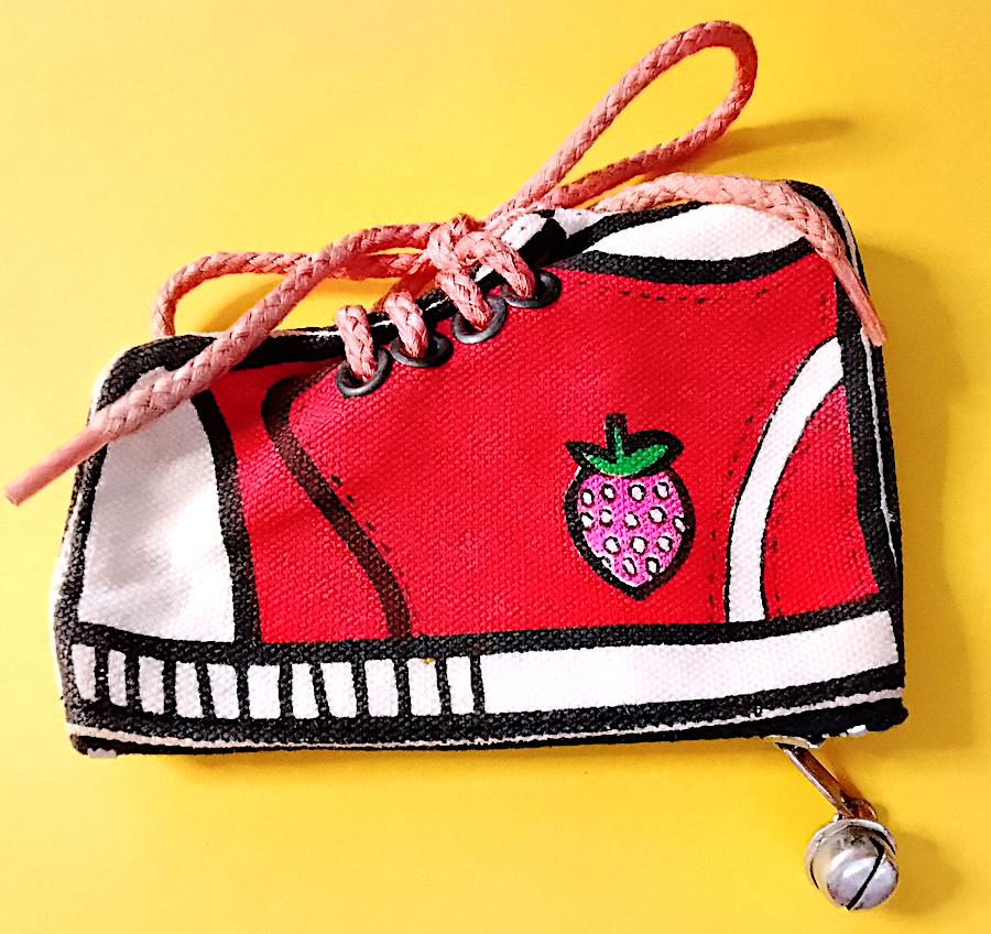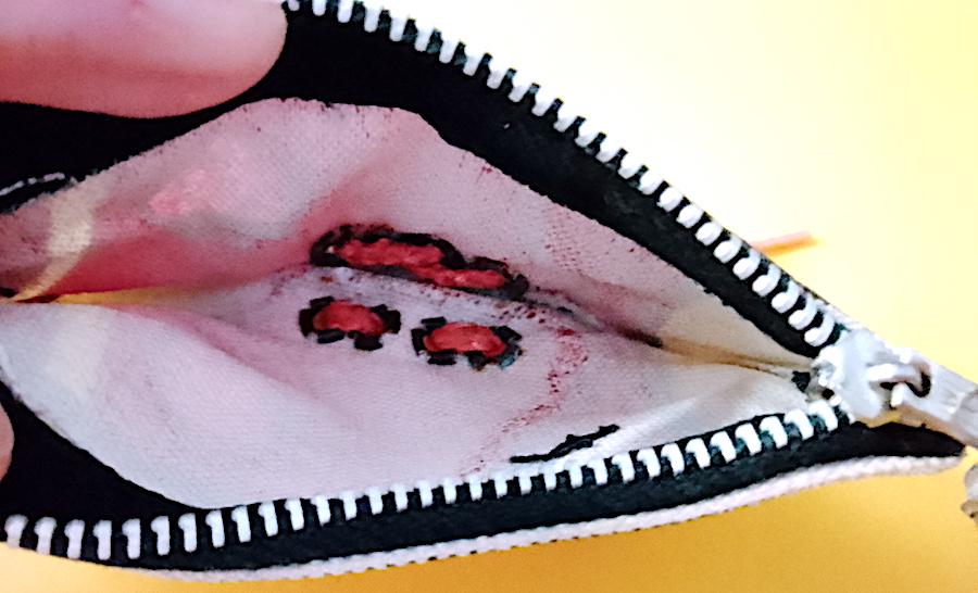 beautiful cotton and nylon coin purse with drawstring and eyelets! zip closure - used - washed and perfumed - good overall condition