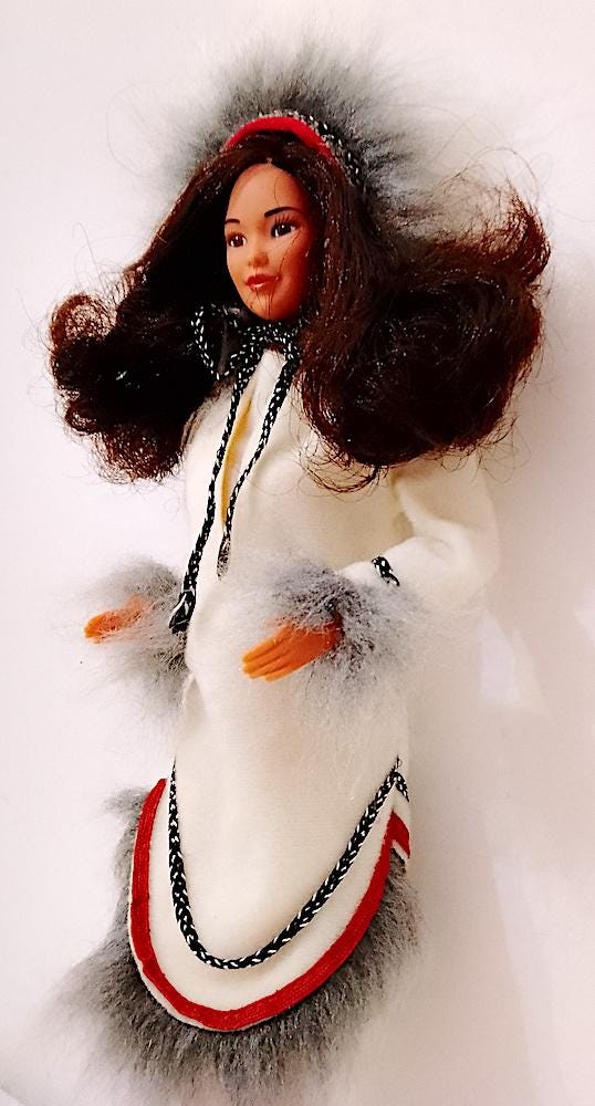 absolutely beautiful - Barbie Eskimo edition with oriental features from 1981 Mattel - used but well preserved, washed and combed - complete with dress, socks/boots, ring - Superstar period - the legs click quite well and the arms are in place - as per photo - as is