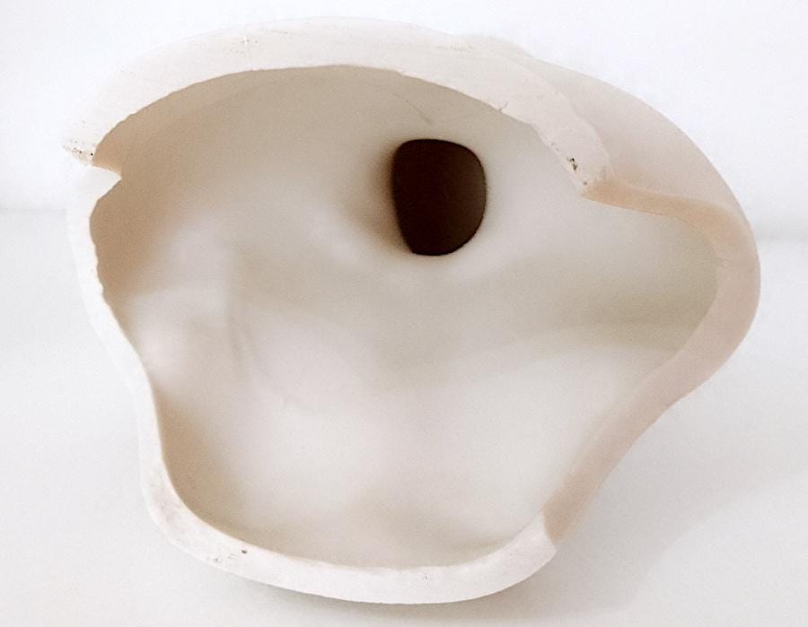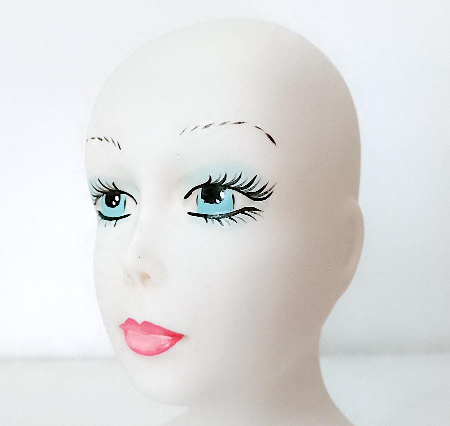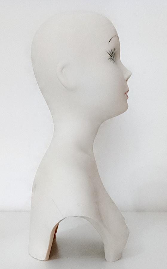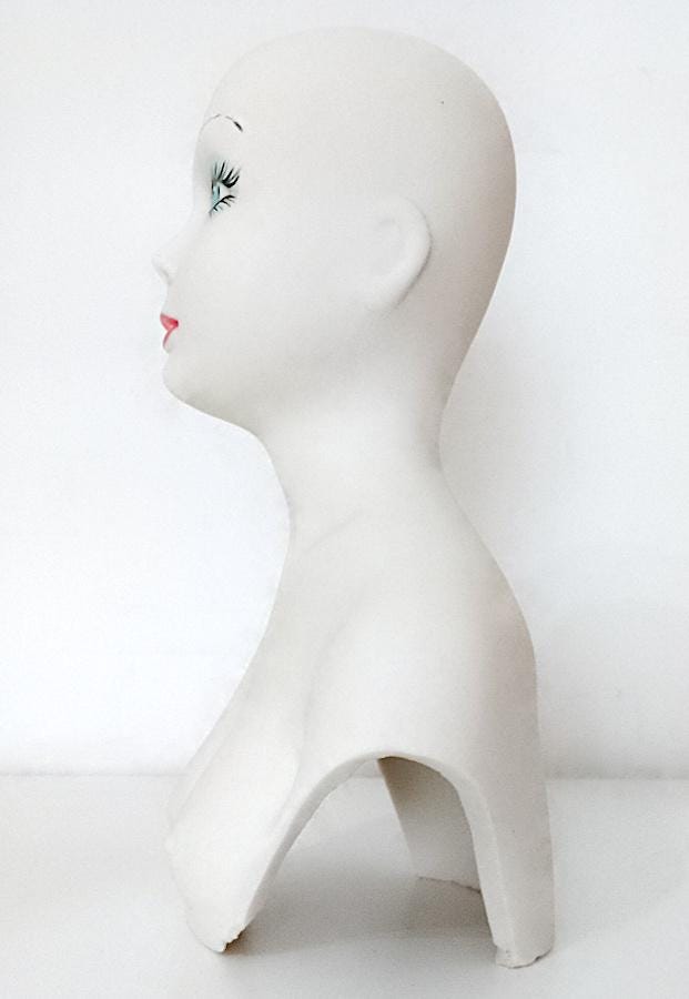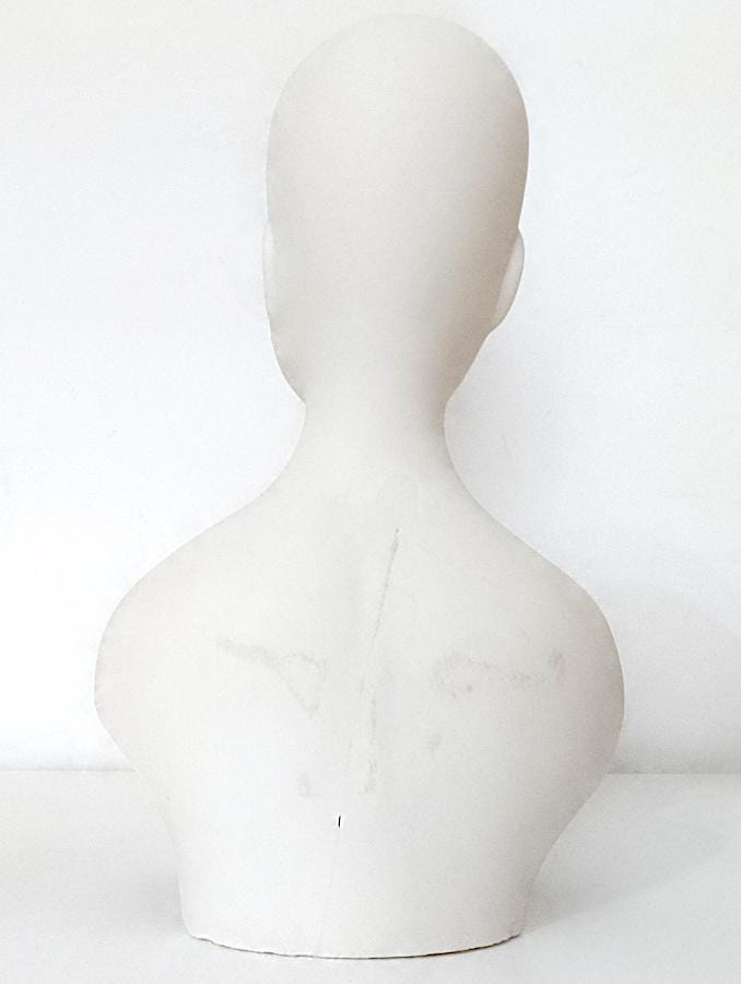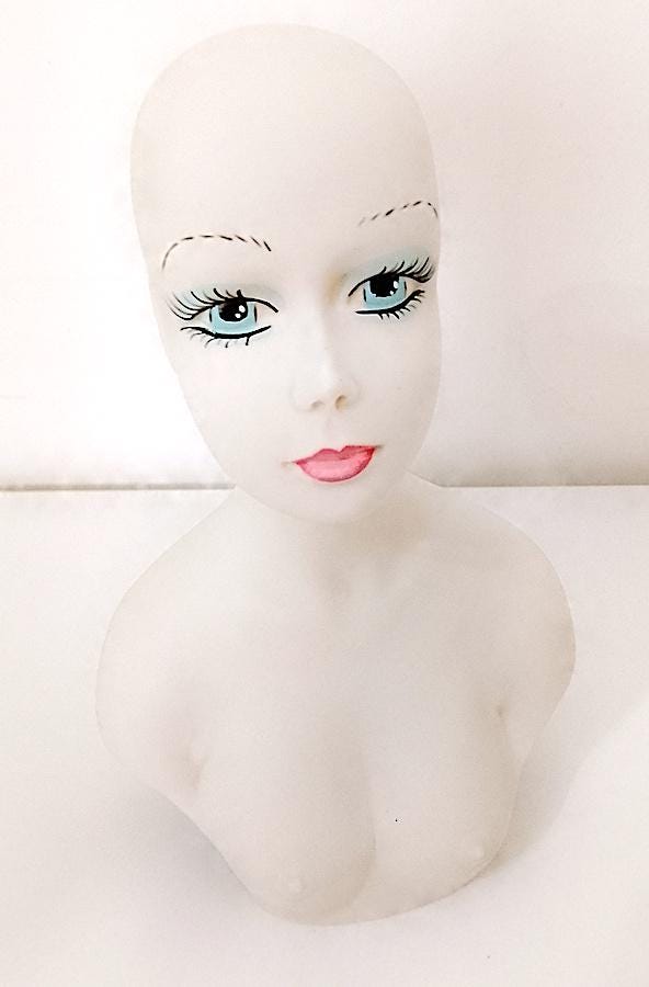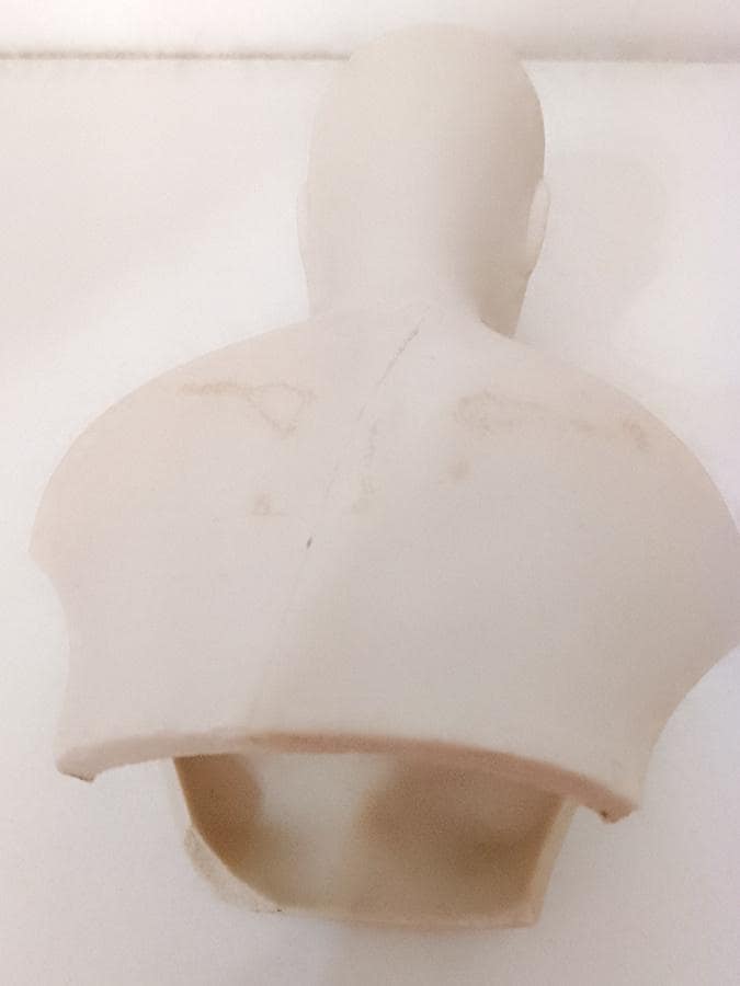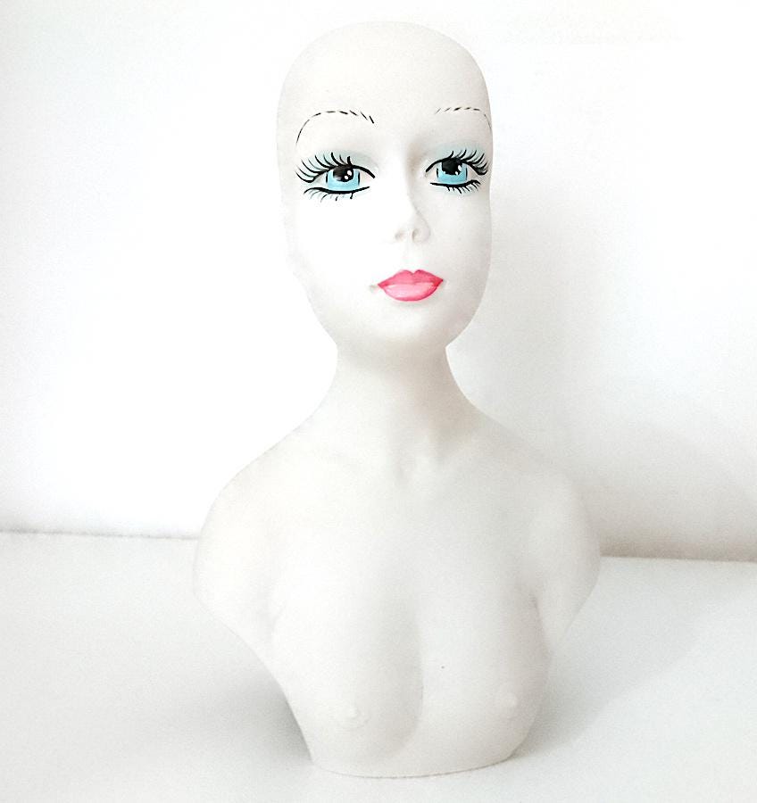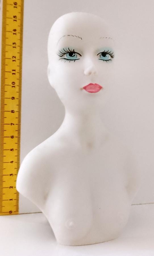 curious hand-painted satin-finished ceramic statuette of a half-length woman - splendid features - from the 70s - perhaps a former doll's torso - artistic and bizarre - a crack on the back and some stains - as per photo - as is