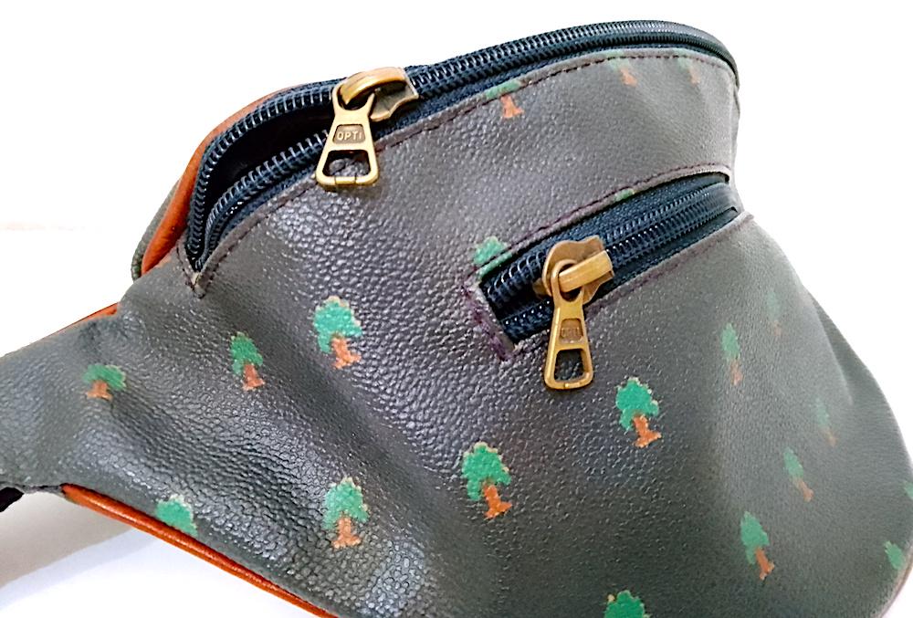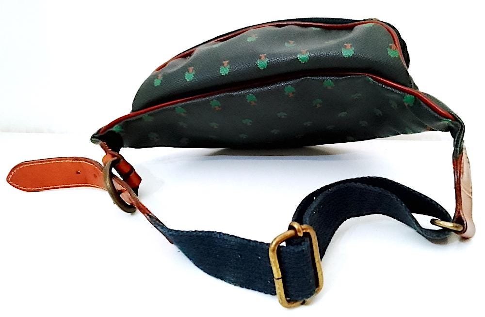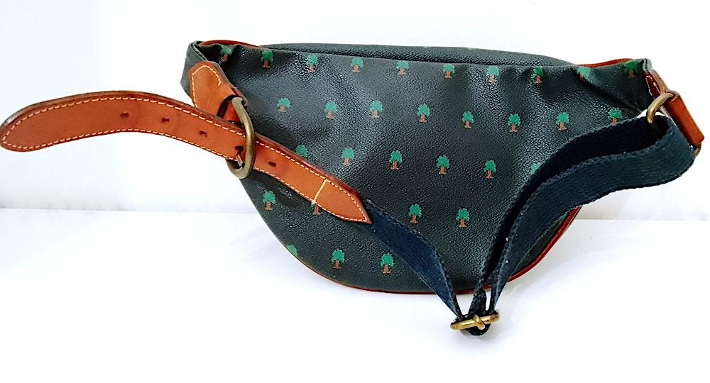 original 80s Naj Oleari bum bag in rough effect waxed cotton with cotton and leather belt - used, needs cleaning better but in excellent condition - as per photo - as is