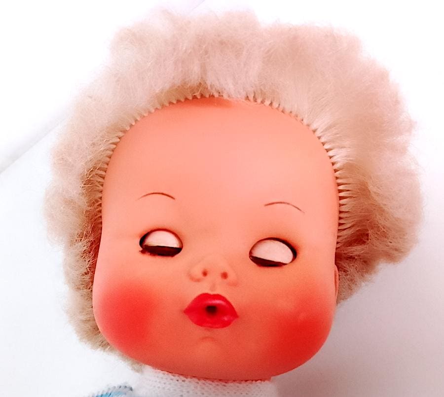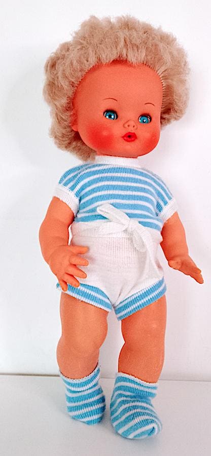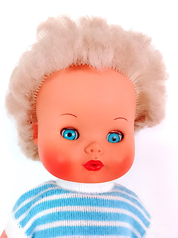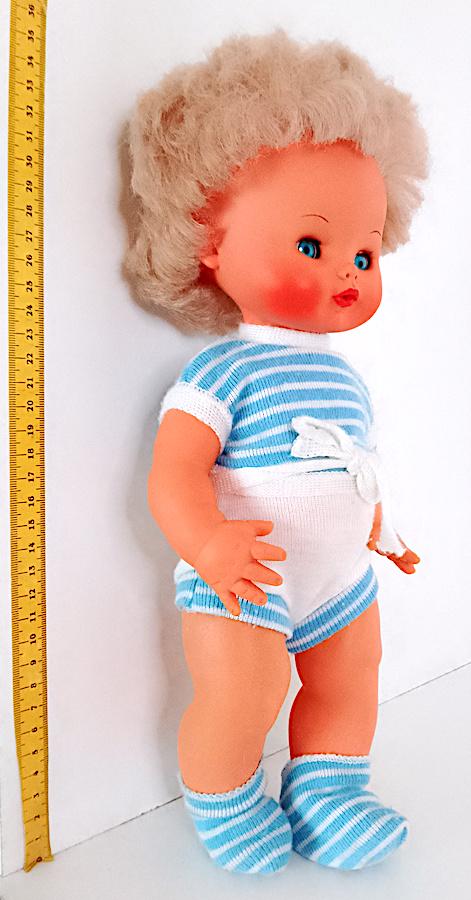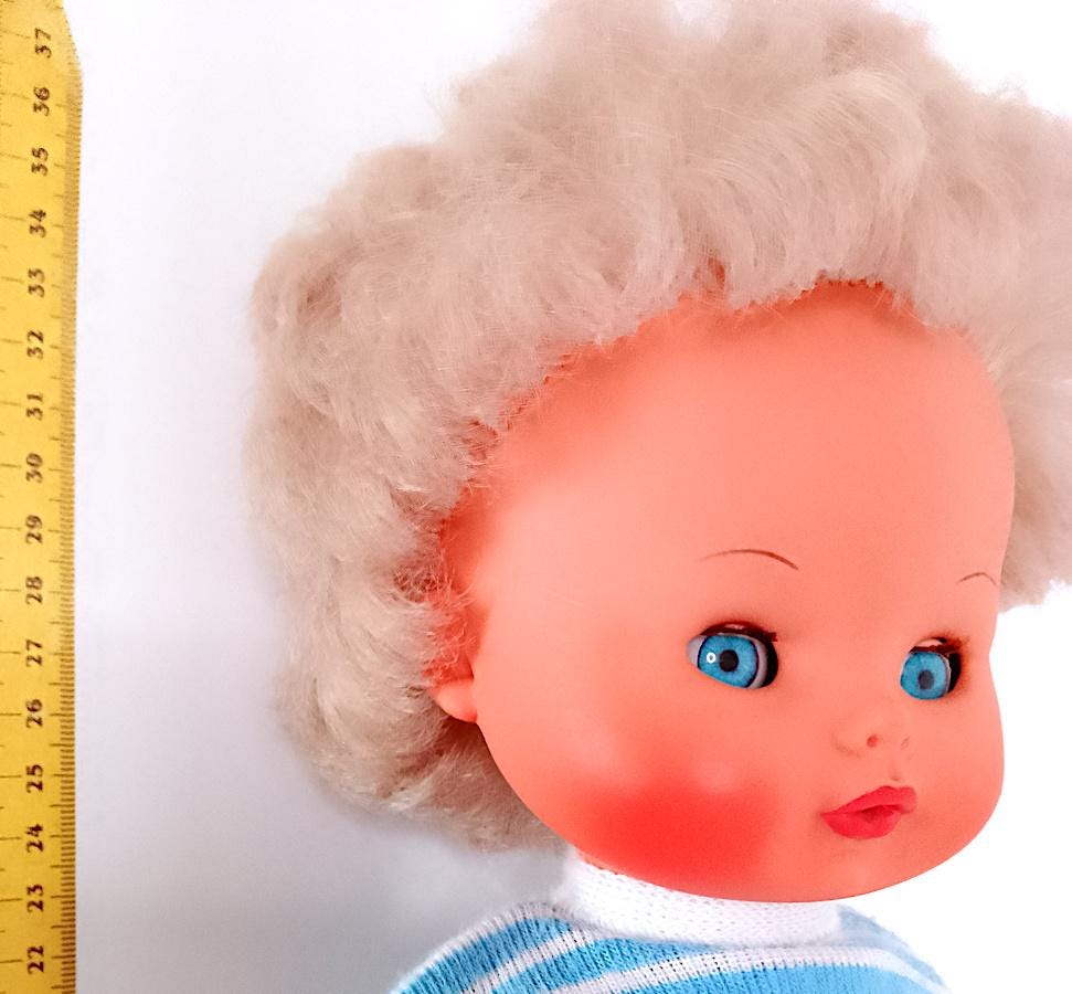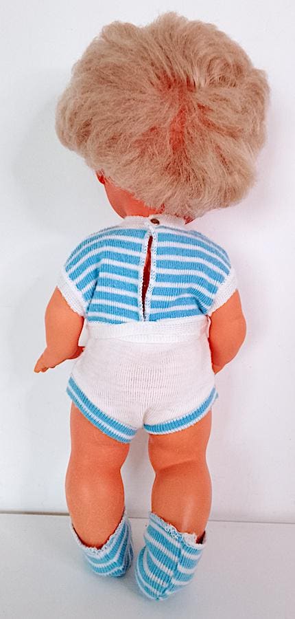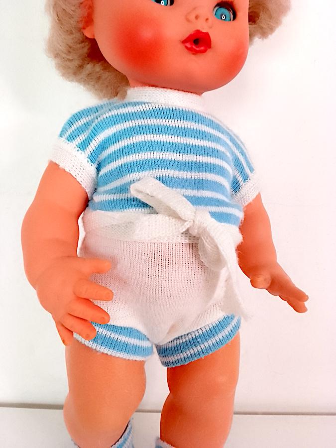 Furga doll from the 70s, probably Poldino or the Gemellini series - made of plastic, clicky eyes - hair washed and combed as best as possible but a bit thick - original clothes, the shorts had a loose elastic waistband and have been sewn back together - overall excellent condition - as shown in the photo - as is