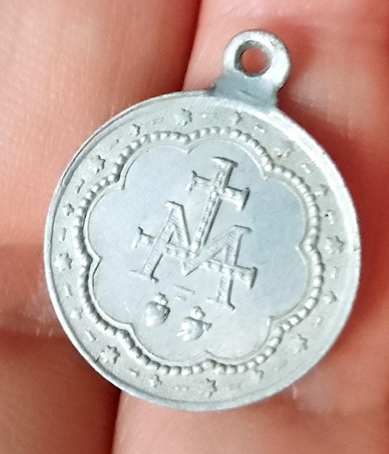 small silver tin souvenir pendant medallion - 70s - excellent - as is