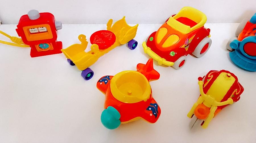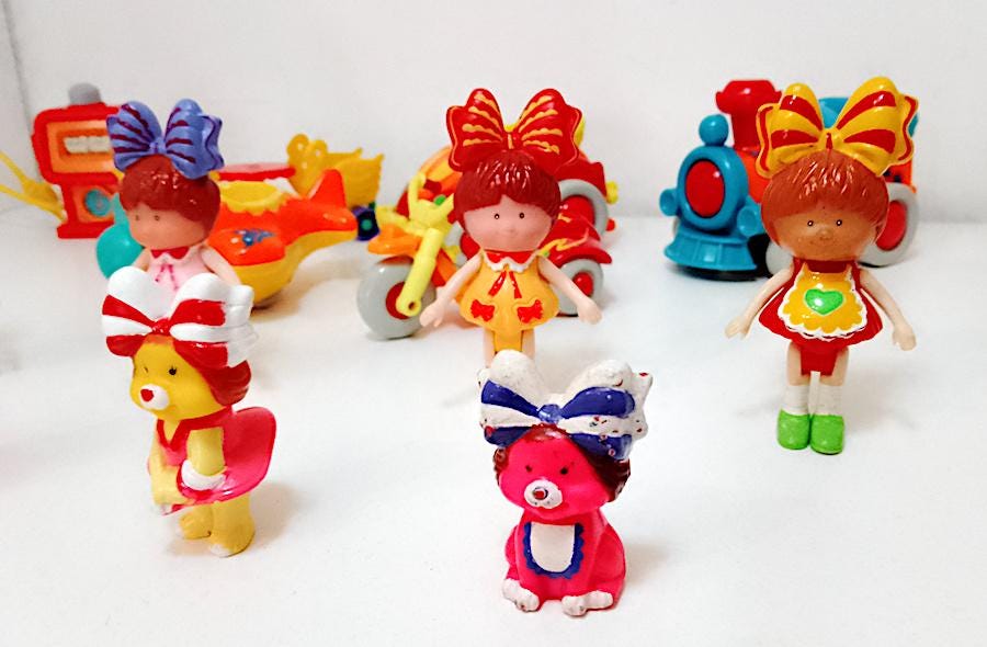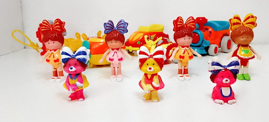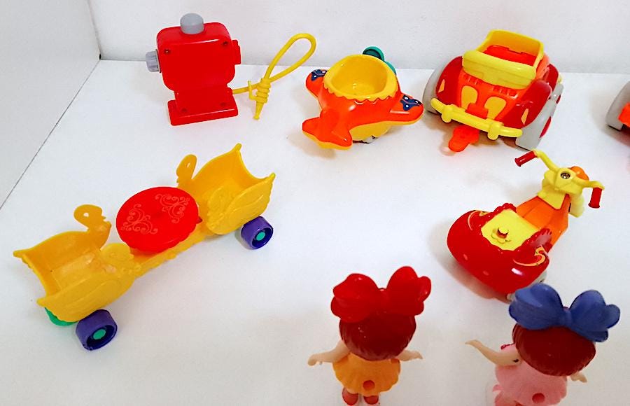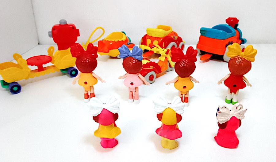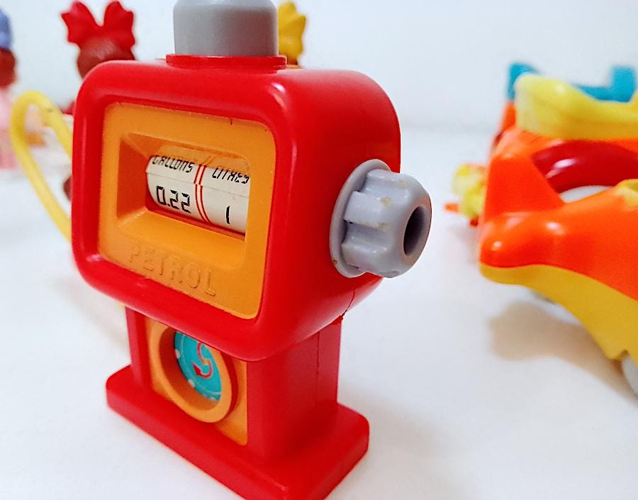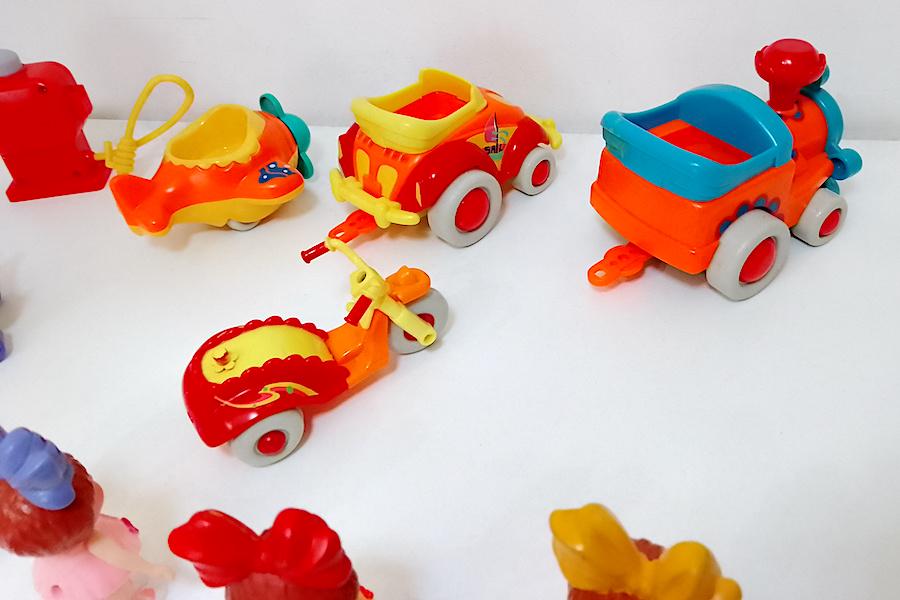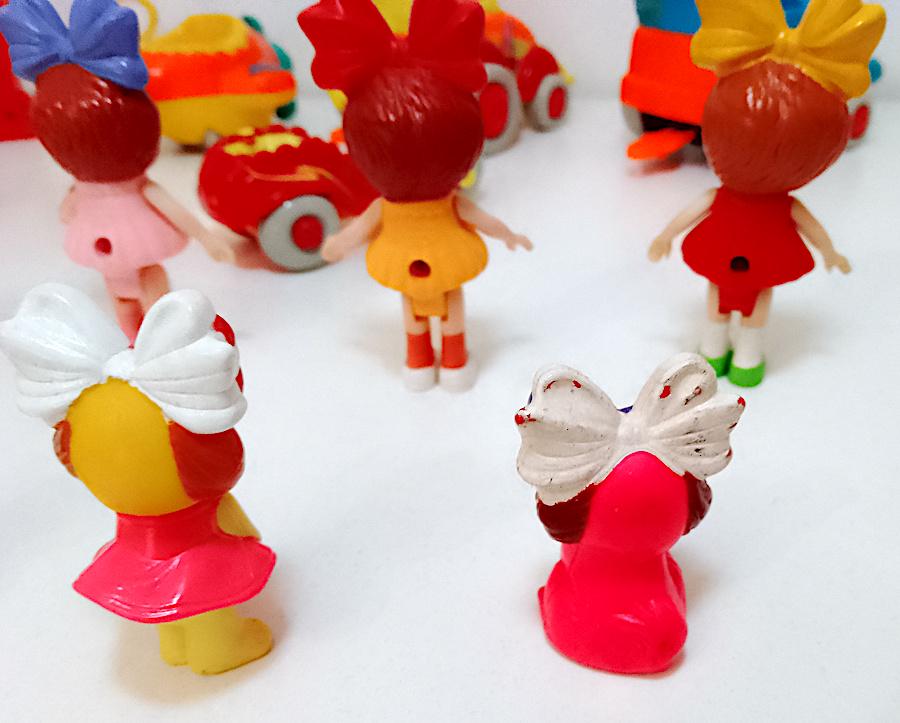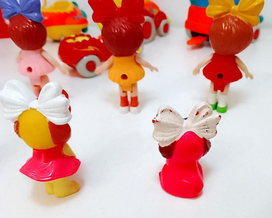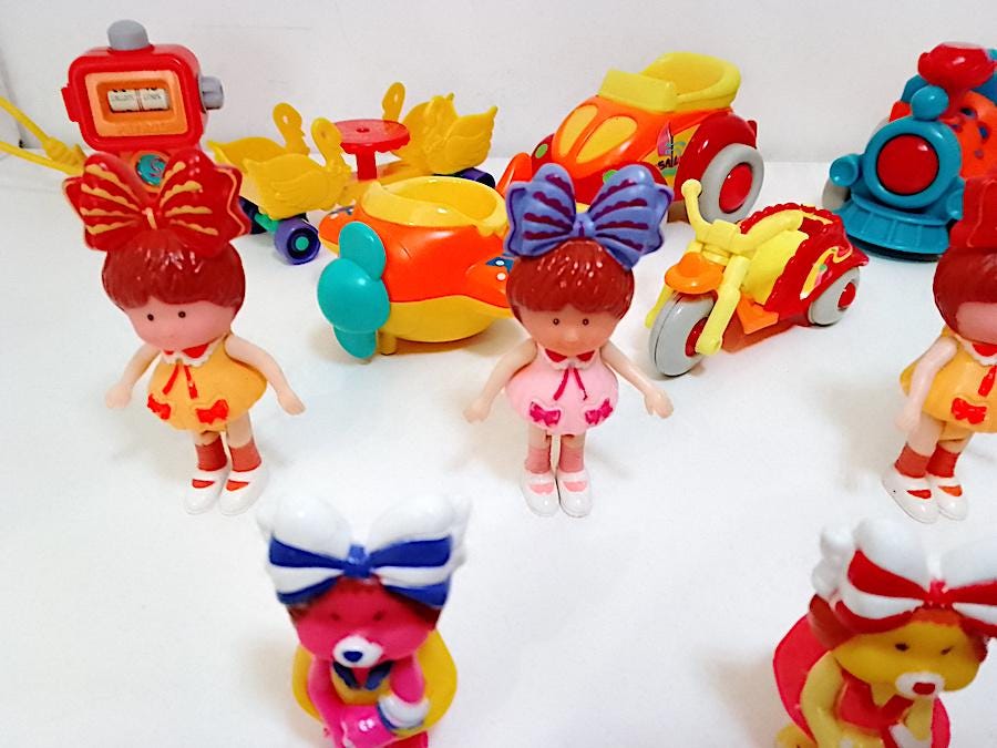 Lot including 5 dolls + 3 dogs + 5 vehicles and a petrol pump - all in plastic with movements - excellent condition, only one doll and a PVC dog have some signs of age - conditions as per photo - as is