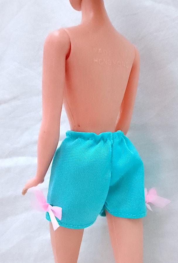 BARBIE 90s lingerie Fancy Frills shorts blue shorts pink bows B657