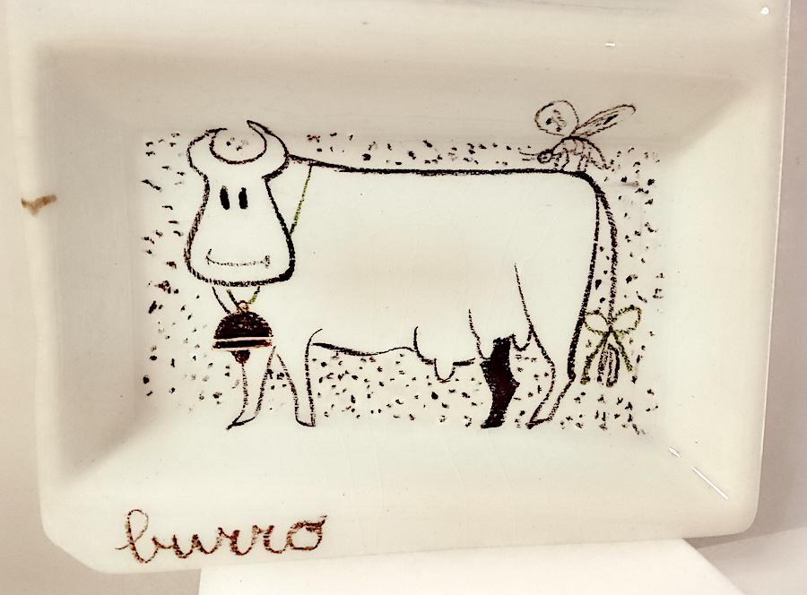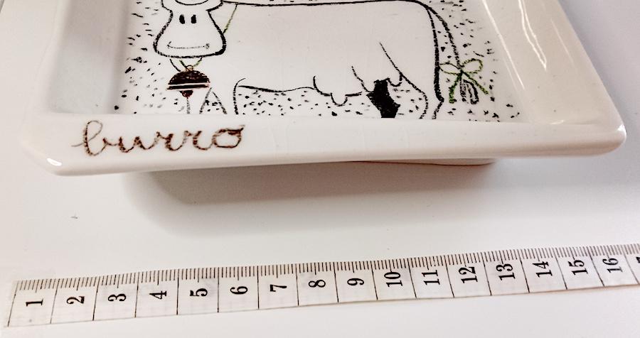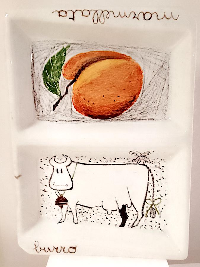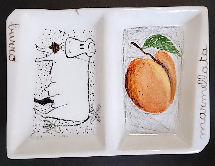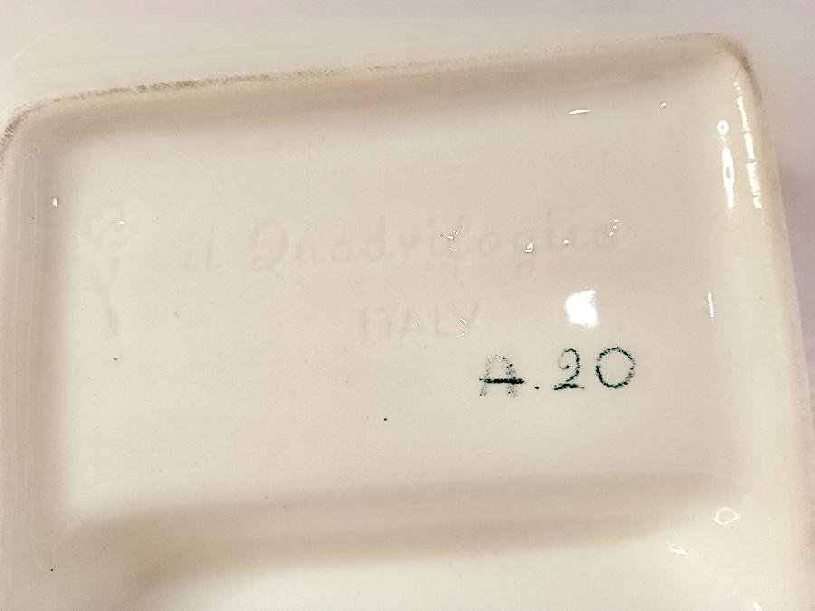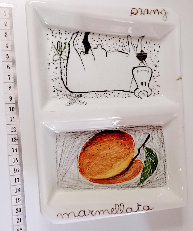 small dividing tray with part for butter and part for jam - for breakfast - branded Il Quadrifoglio - made in Italy - 1950s - perfect condition, no breaks or scratches - what appear to be stains are part of the pastel effect design - measurements in the photo - as is