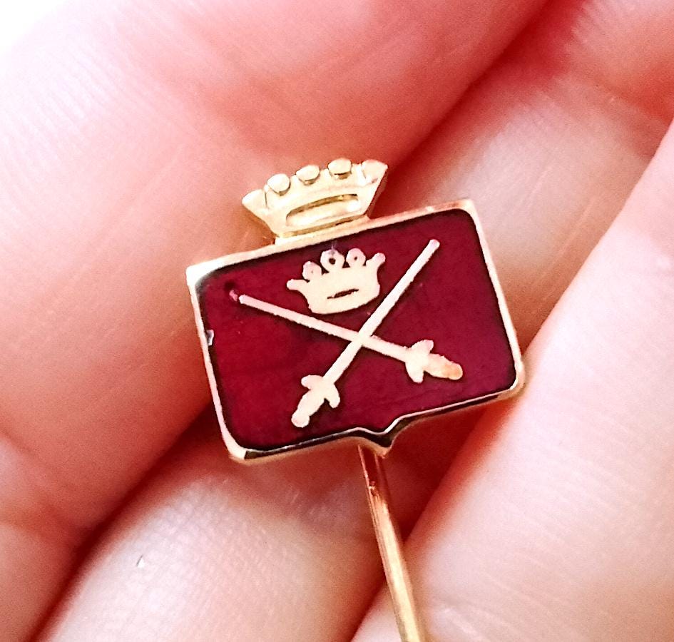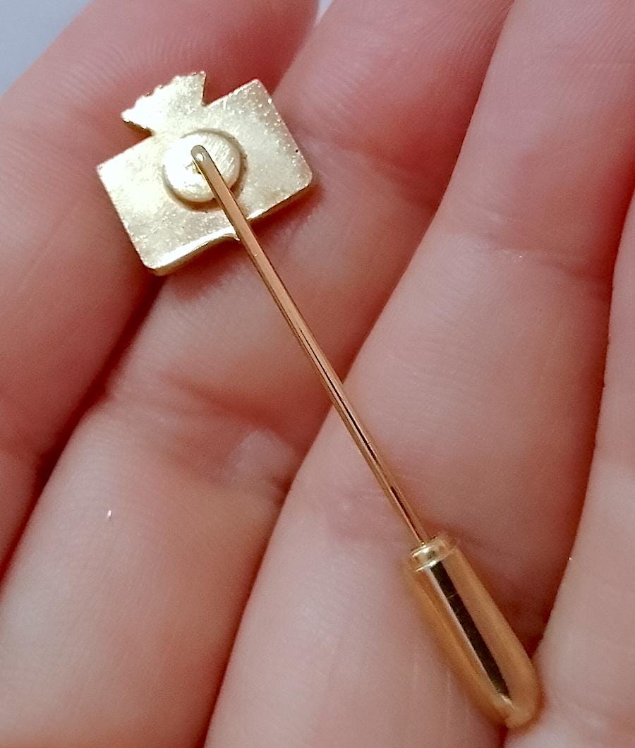 gold metal lapel pin with enamel, practically new, perfect - 1990s - military souvenir - as shown in the photo - as is