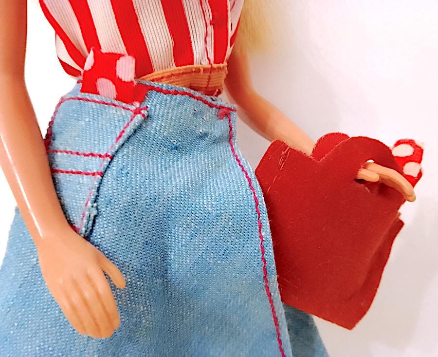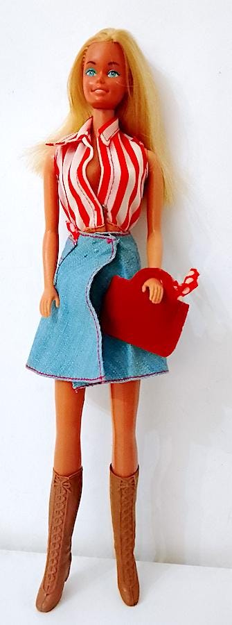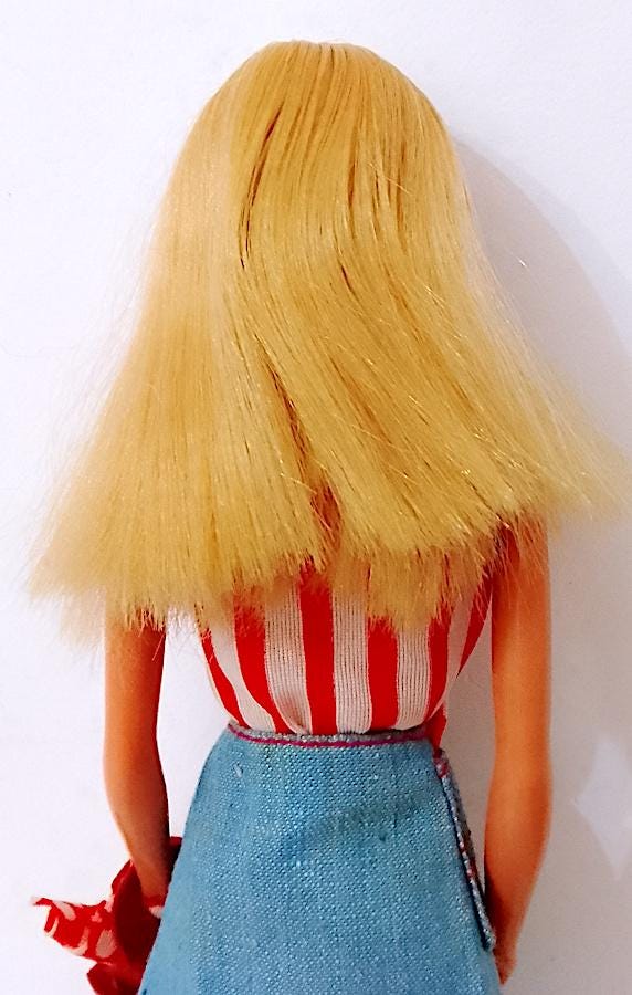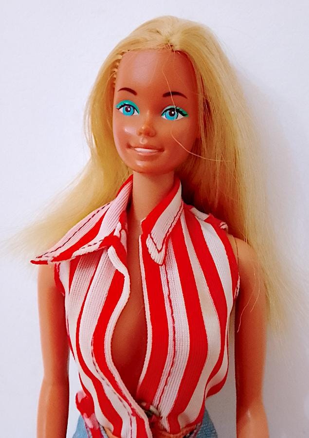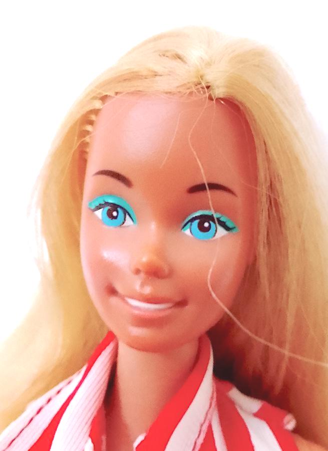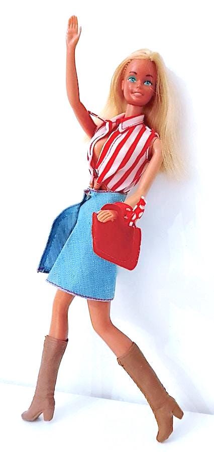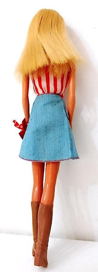 bellissima Barbie Portofino edizione europea del 1975 made in Korea originale in buone condizioni, lavata e pettinata, capelli belli lucidi e morbidi, da pettinare meglio sul davanti ma senza mancanze - le gambe sono belle e morbide ma non cliccano perfettamente, una torna un pò indietro - il movimenti sono un pò morbidi, non molli, morbidi - qualche lievissimo segnetto del tempo , testa in gomma molto rigida ma viso perfetto e straordinario - indossa parte del completo Best Buy 1974 #7823 in buone condizioni, una macchietta sul top - la borsa non è del completo ma assolutamente originale del periodo - i micro fazzoletti sono entrambi originali in tasca e in borsa - stivali in gomma dell'epoca ottimi e morbidi - come da foto - as is