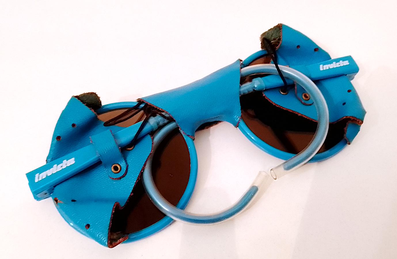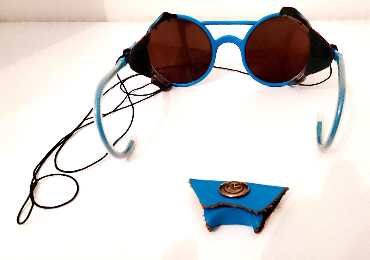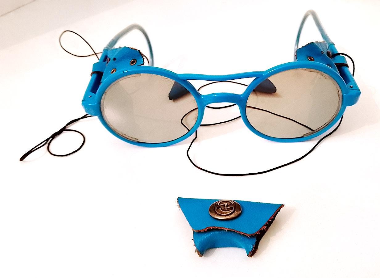 beautiful vintage ice, snow, ski sport glasses from the 70s/80s by Invicta, absolutely original and well preserved, very few signs of aging, the leather inside just needs cleaning - complete with cord and temple holder with Invicta metal button - the temples are plasticized and curved behind the ears - conditions as per photo - as is