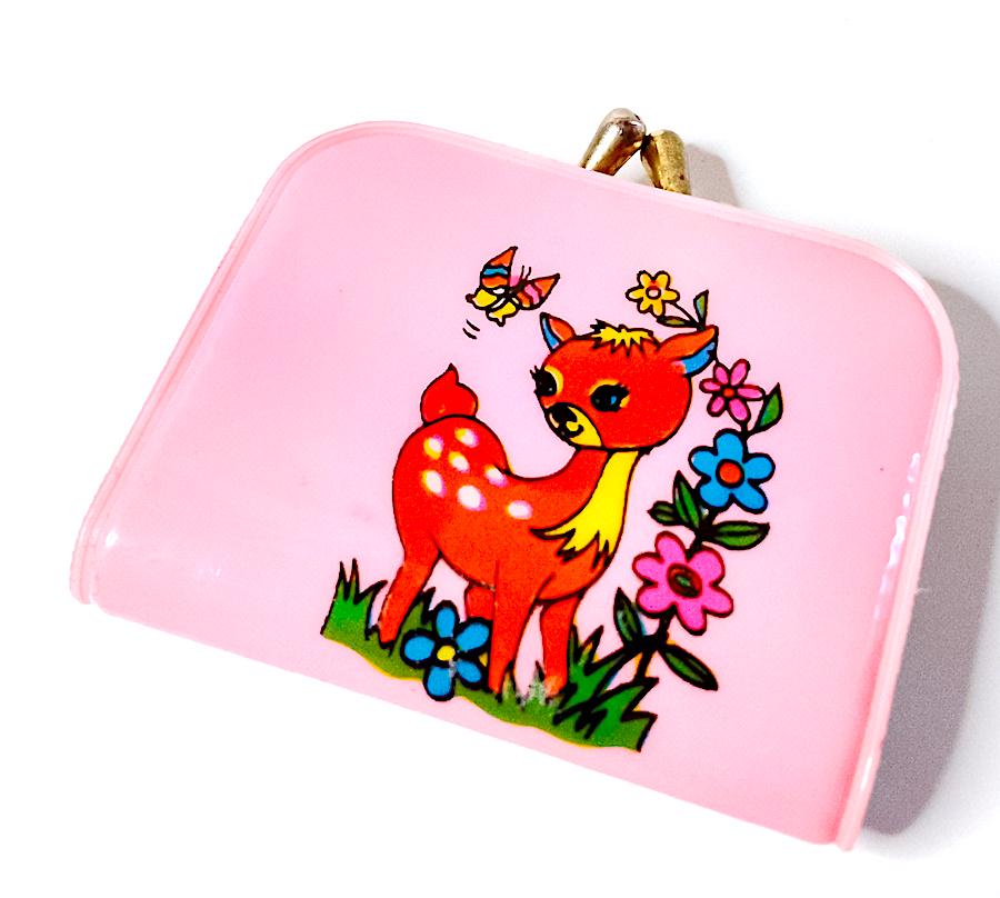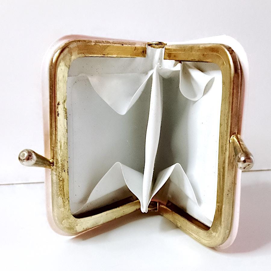 80's kawaii mini coin purse in red and transparent plastic - used but in good condition - with metal key ring - as shown in the photo - as is