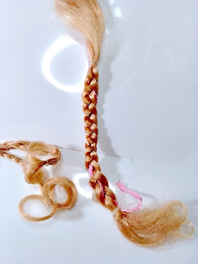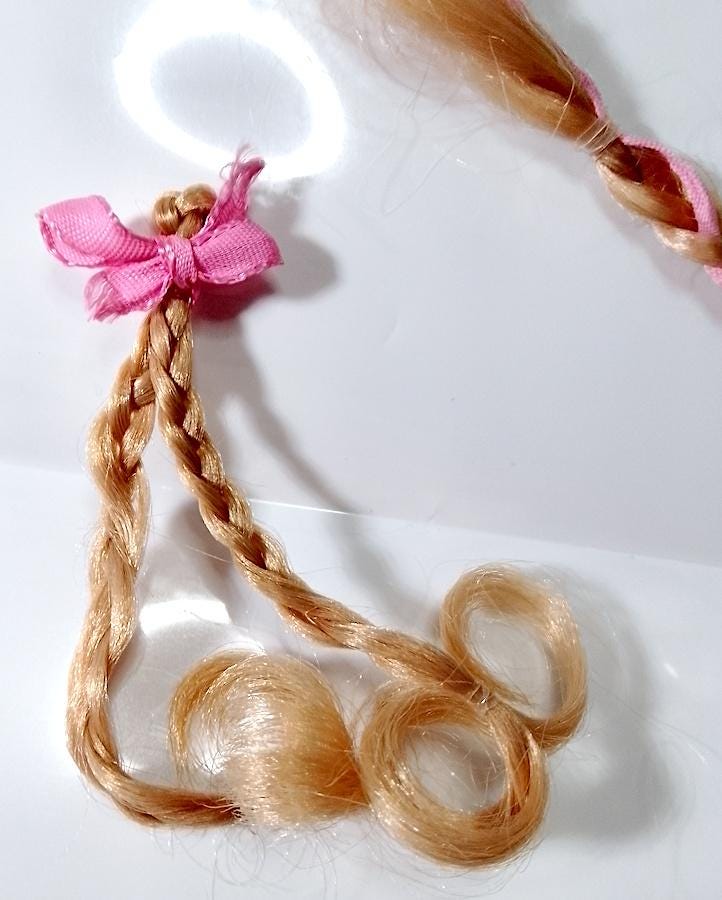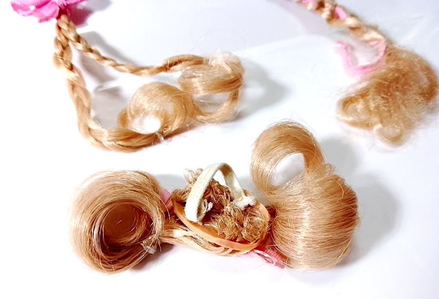 Set as pictured - excellent condition, unwashed - no hairpins but with pink ribbons and elastic - as is - very rare