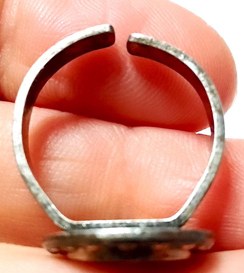 beautiful adjustable metal ring suitable for all fingers - French souvenir from the 80s - to be polished, antique silver effect - well made - as per photo - as is