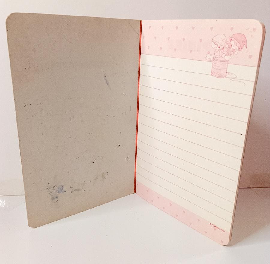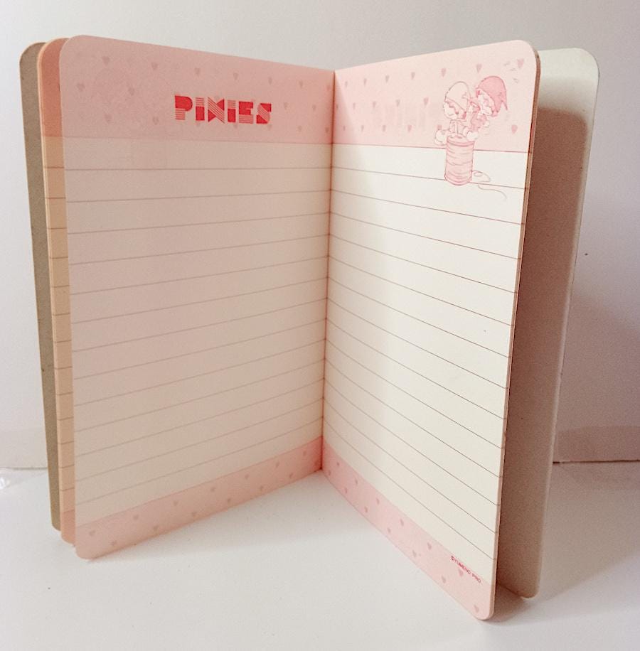 small, cute, super kawaii notebook - little used, 1/2 pages missing - some age-related stains on the cover - as shown in the photo - as is