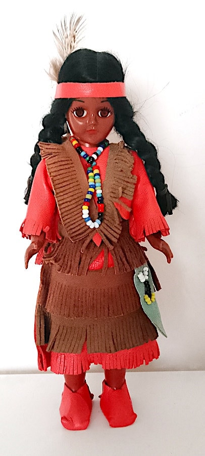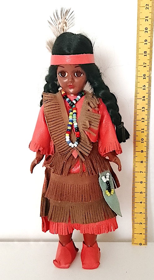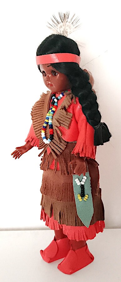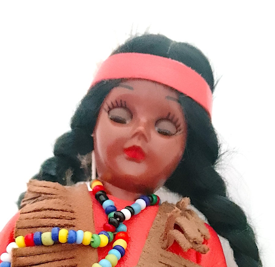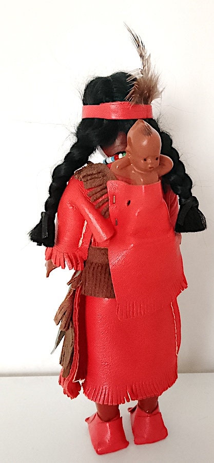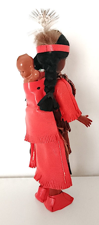 beautiful 60's souvenir doll with red dress and papoose with newborn