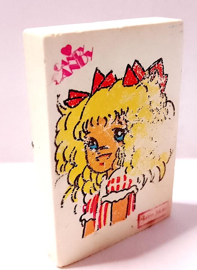 original eraser from the 80s, never used but with signs of aging on the print and on the back as shown in the photo - as is