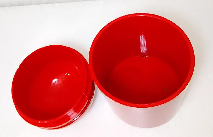 splendid original Kartell container jar designed by Anna Castelli Ferrieri from the 70s - intact in excellent condition, only a small internal stain and very slight signs of aging that are barely visible when held up to the light - no breaks or cracks - as per photo - as is